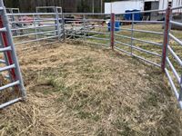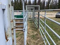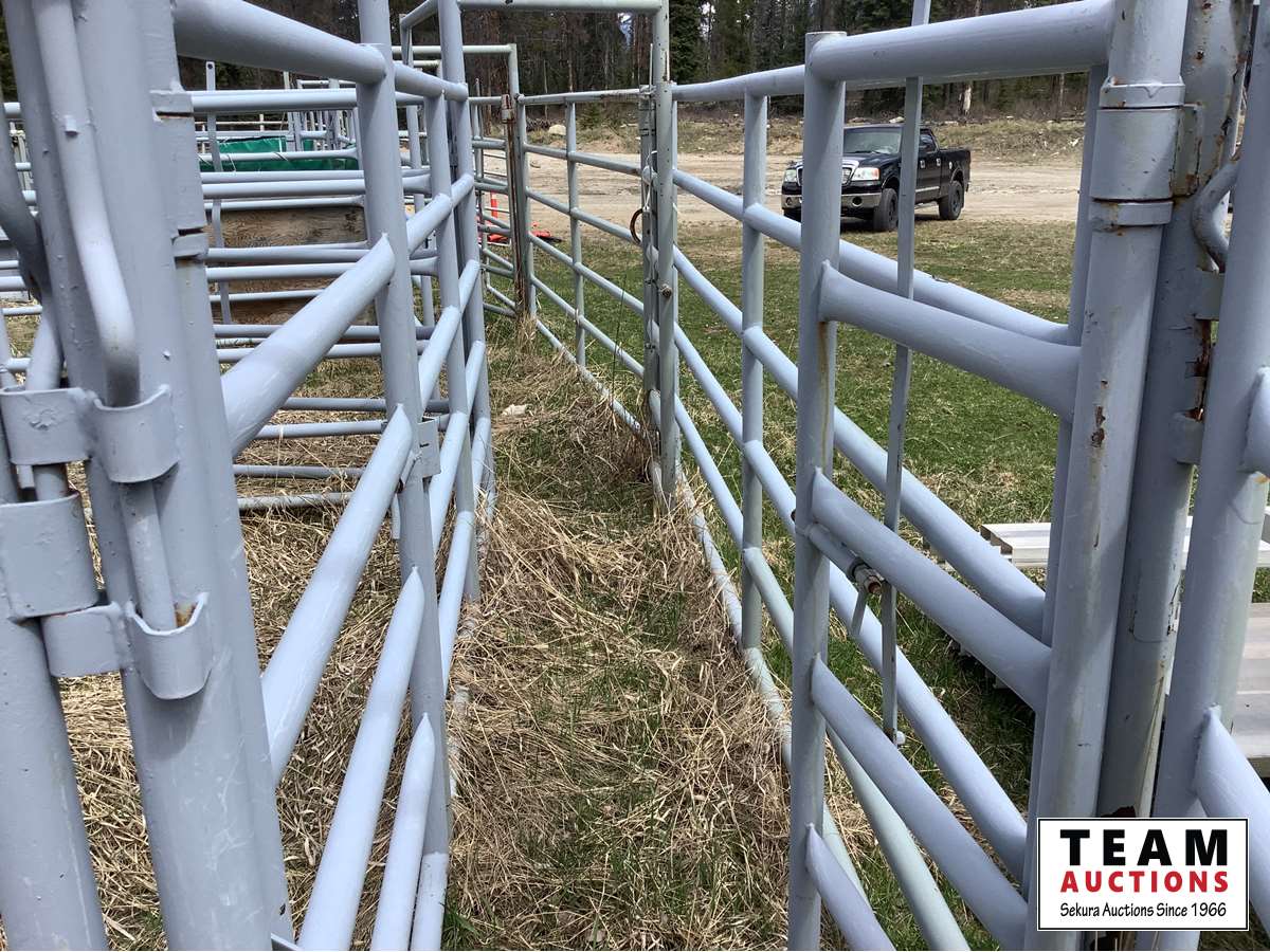 24 panels c/w posts, a walk thru gate, a drive thru gate, plus the timed event at the end with 2 large drive through gates, 4 pens with gates, alley, extra posts, chute, head box, healer box c/w pads