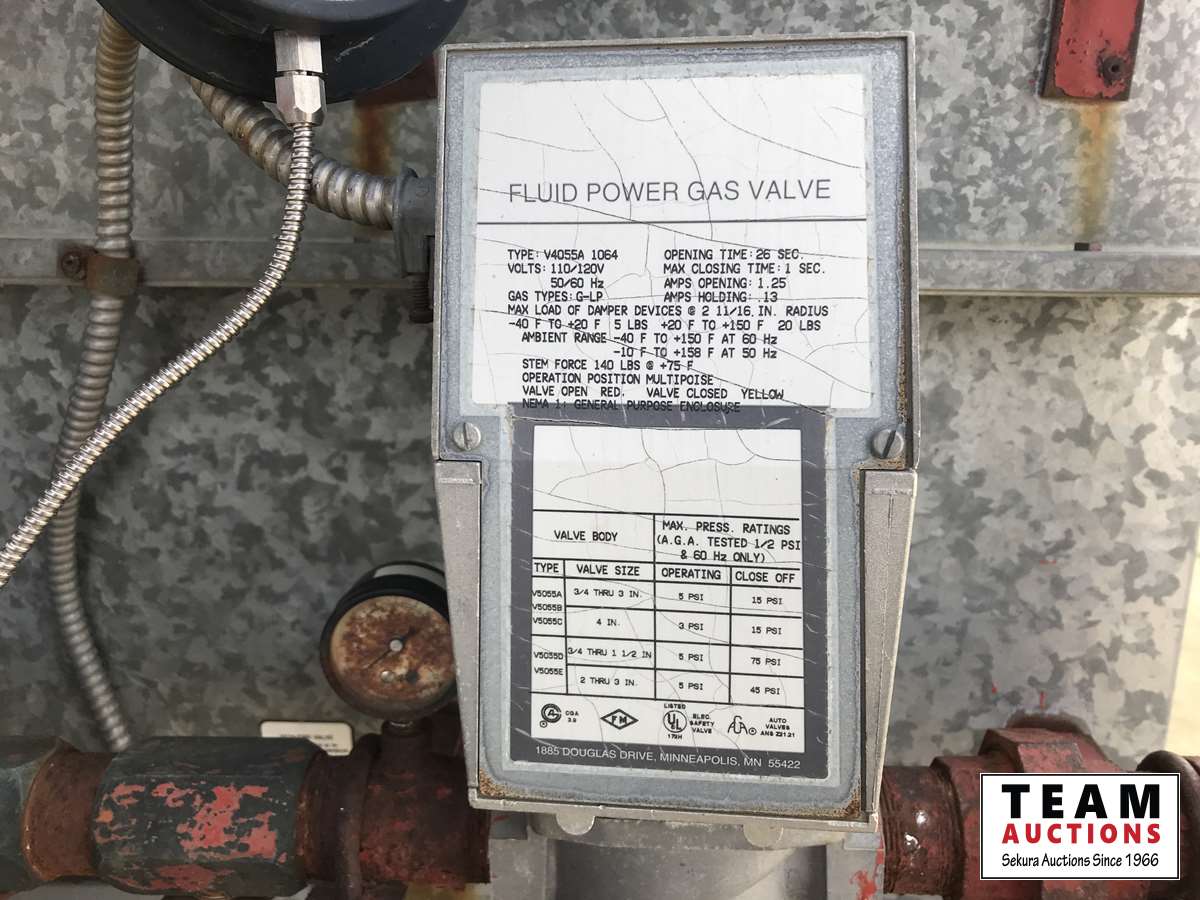 Electrical 600V, 34.5 amp, 3 phase power, natural gas, inlet supply pressure of 5 PSI, all specs are on serial tag in pictures