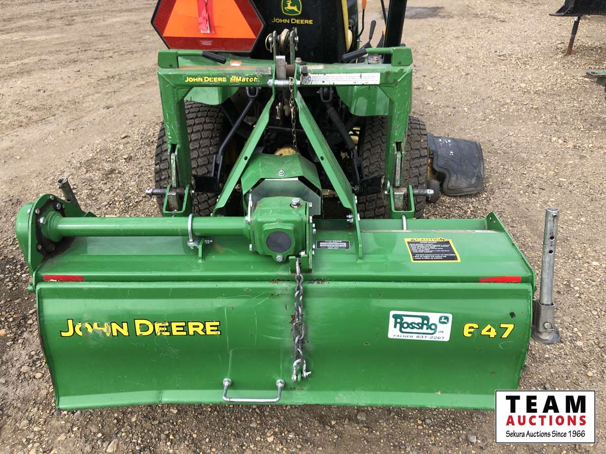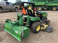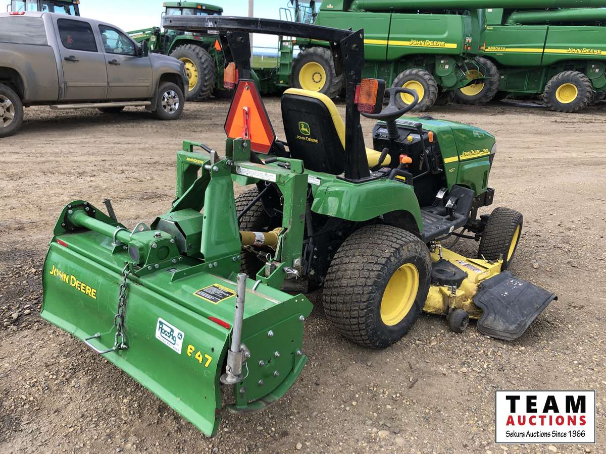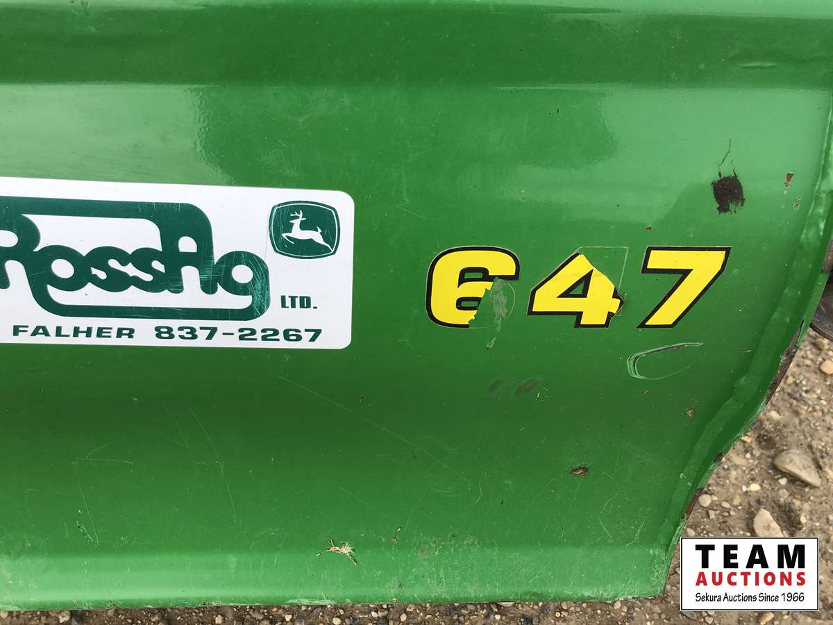 62 inch cutting deck, John Deere 647 47 inch rototiller, 18 x 6.50-10 fronts, 26 x 12.00-12 rears