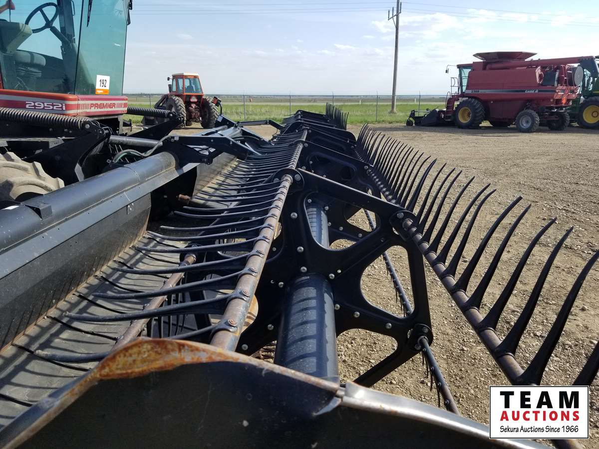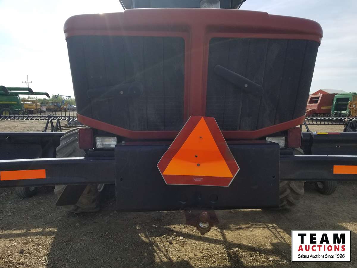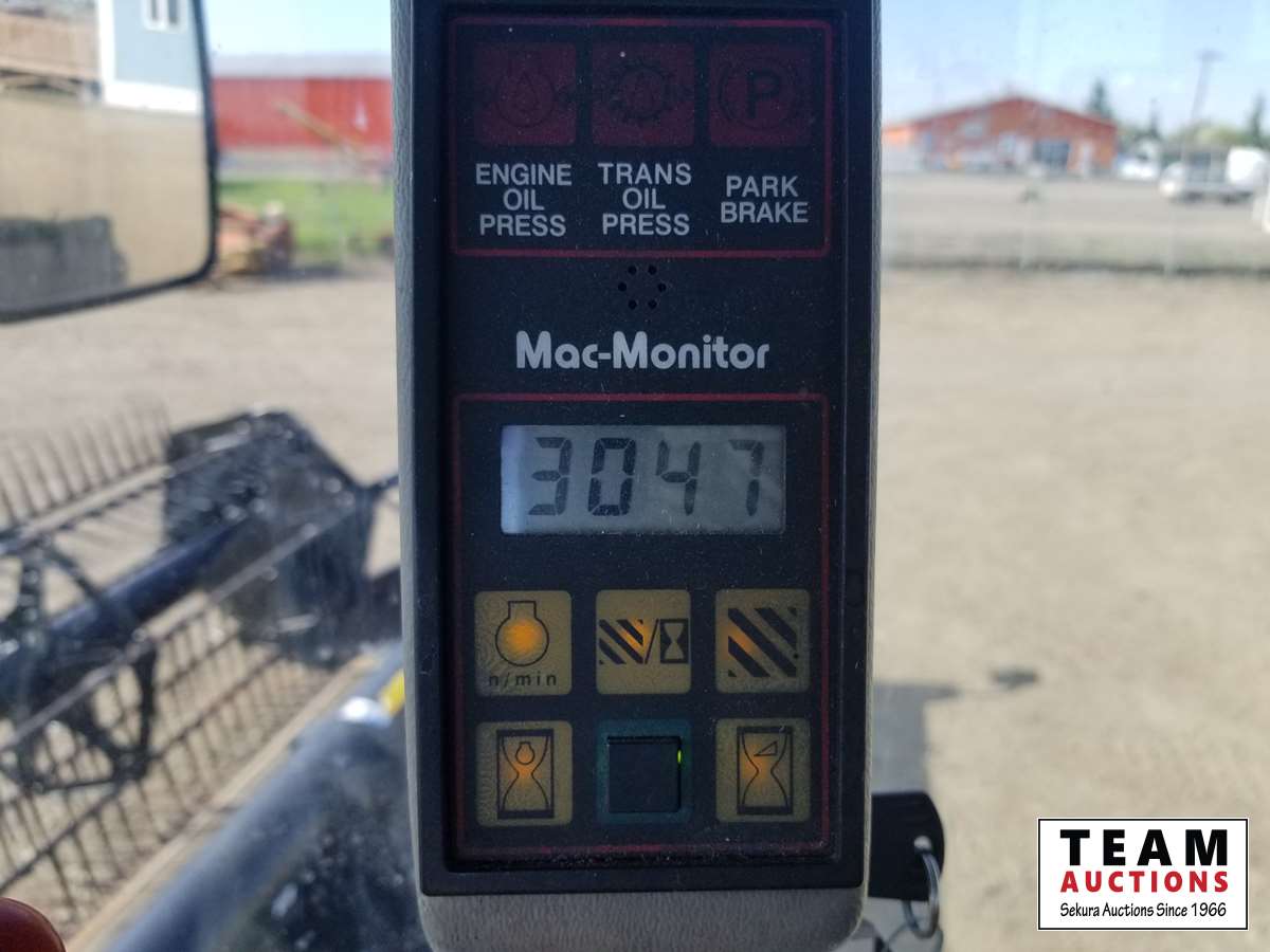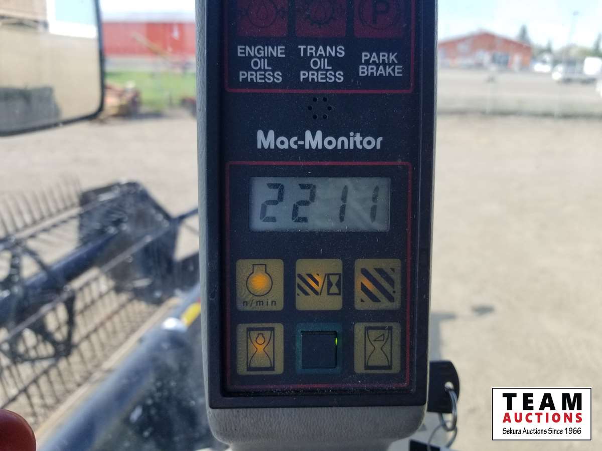 MacDon 972 header, P/U reel, split, double knife drive, trip delivery, 540/65R24 F, 16.5-16.1 R, Header hrs: 2211