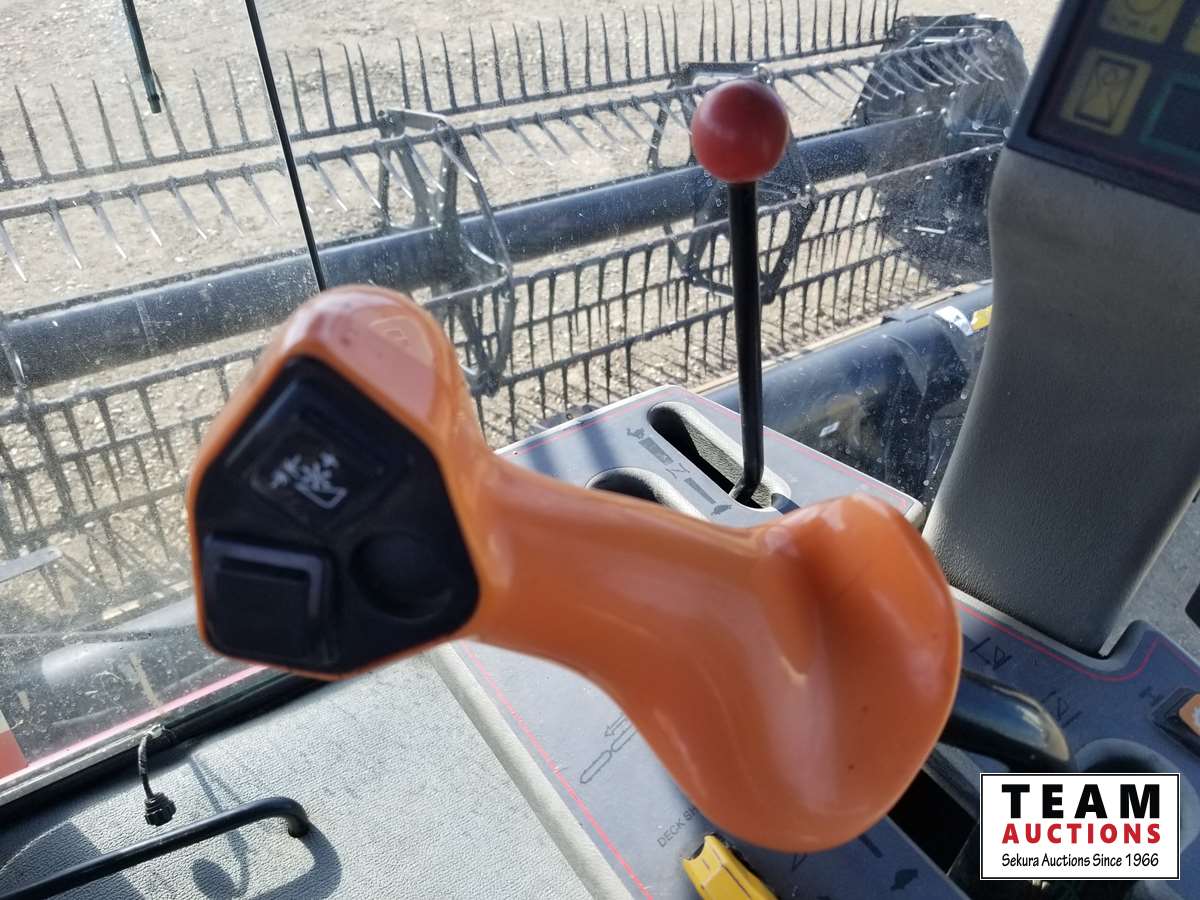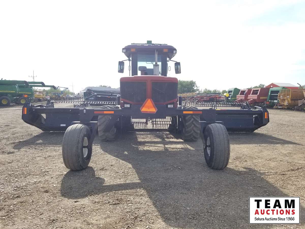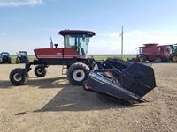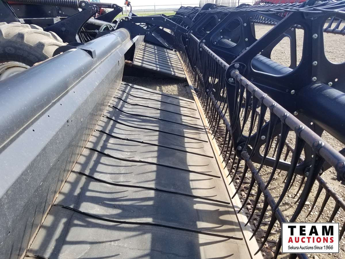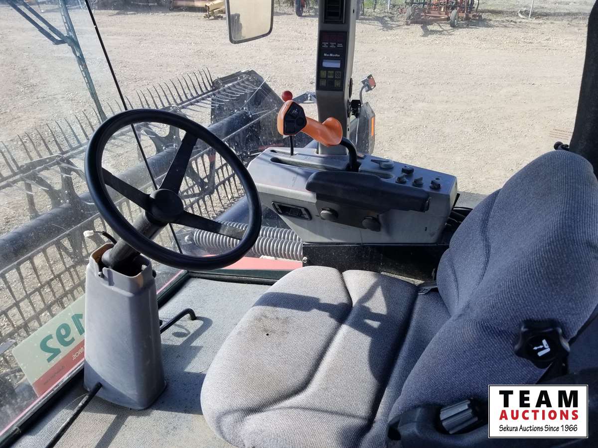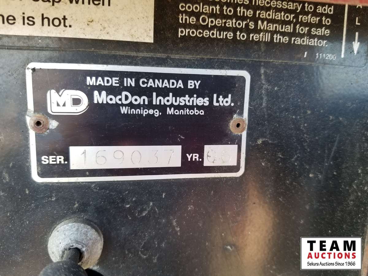 MacDon 972 header, P/U reel, split, double knife drive, trip delivery, 540/65R24 F, 16.5-16.1 R, Header hrs: 2211