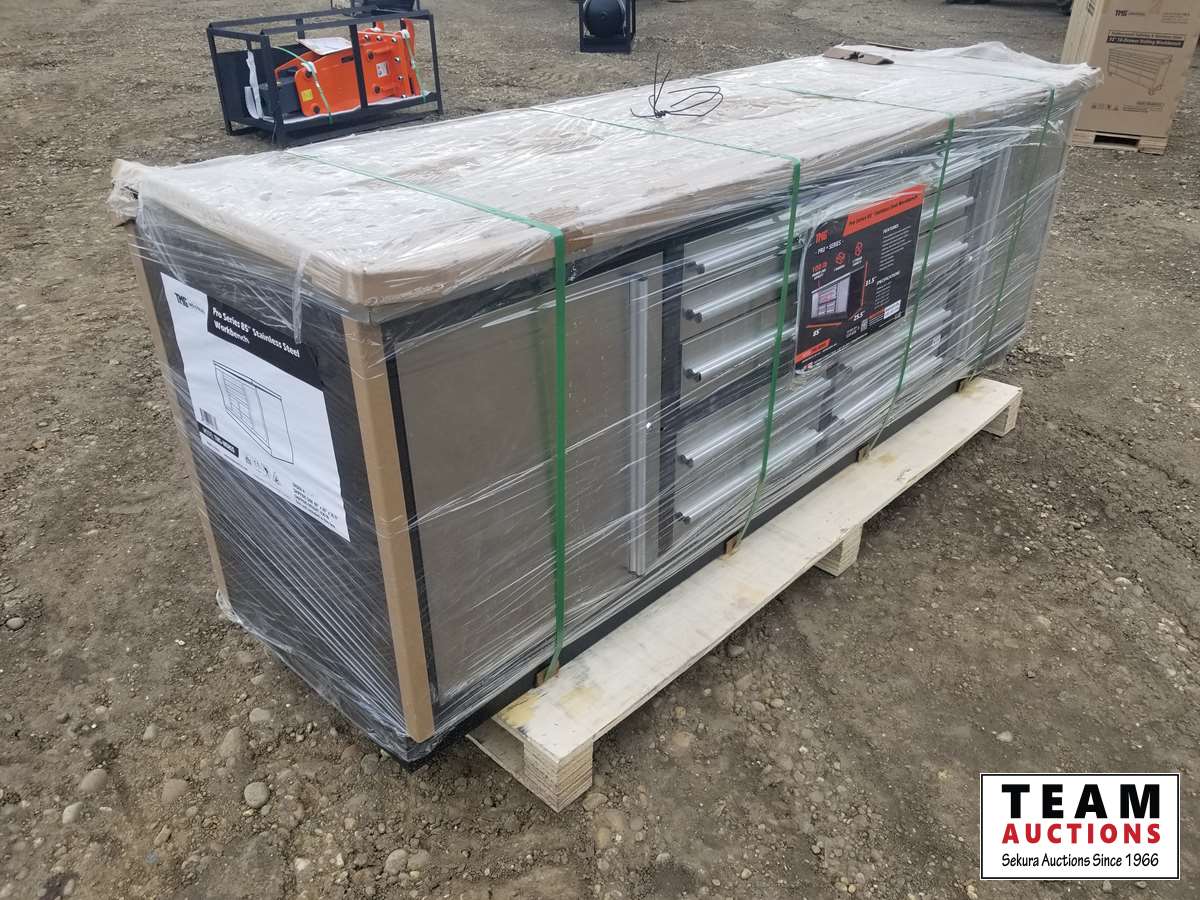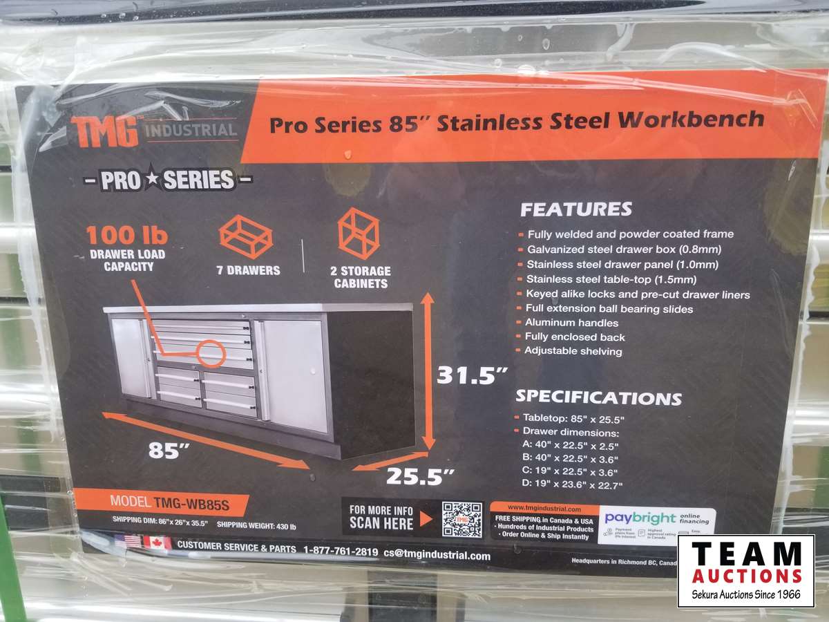 93 TMG Industrial Pro Series 85 Inch Stainless Steel Workbench (Unused)
