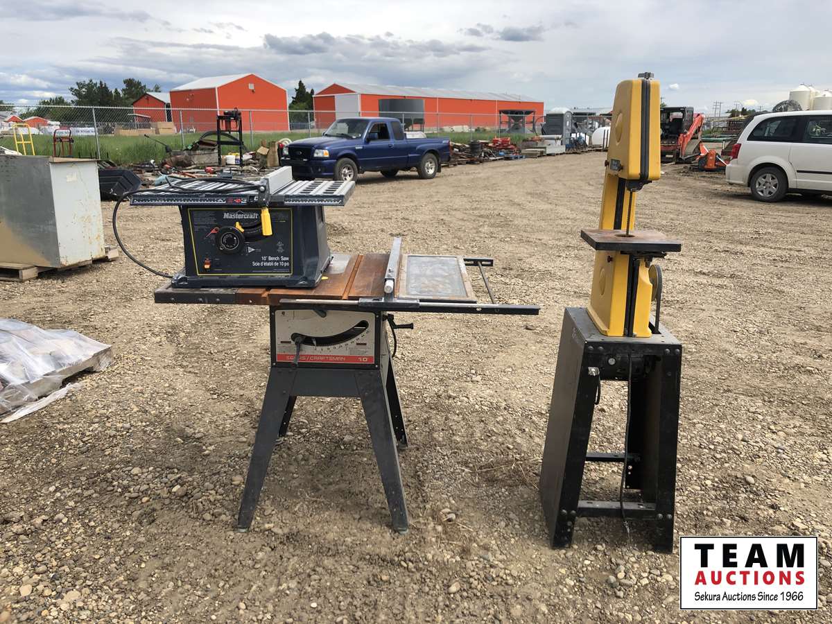 Rockwell 10 inch bandsaw, Sears Craftsman 10 inch table saw, table top 10 inch bench saw