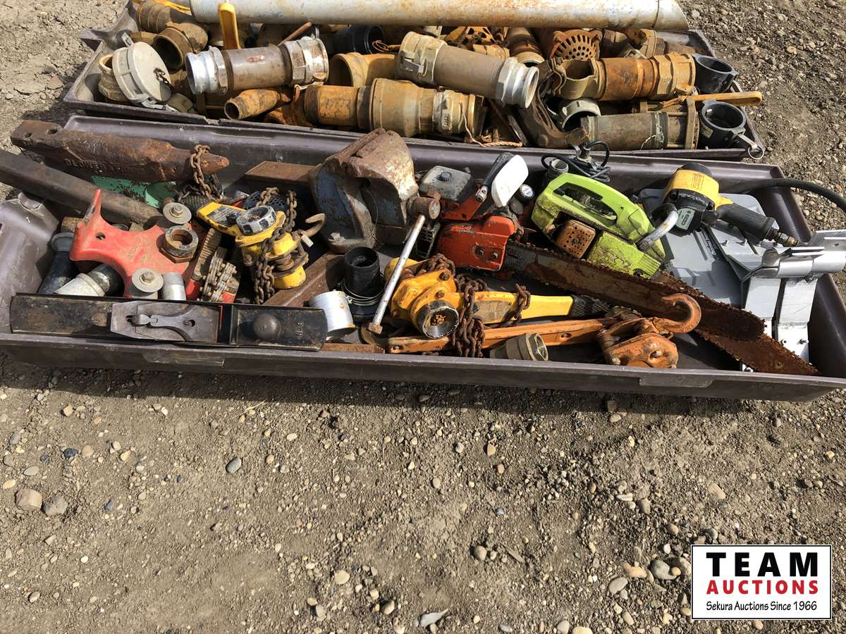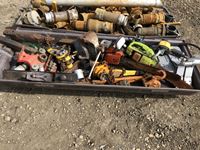 Miscellaneous fittings, (2) inoperable chainsaws, vice, plane vice, ratchet boomers