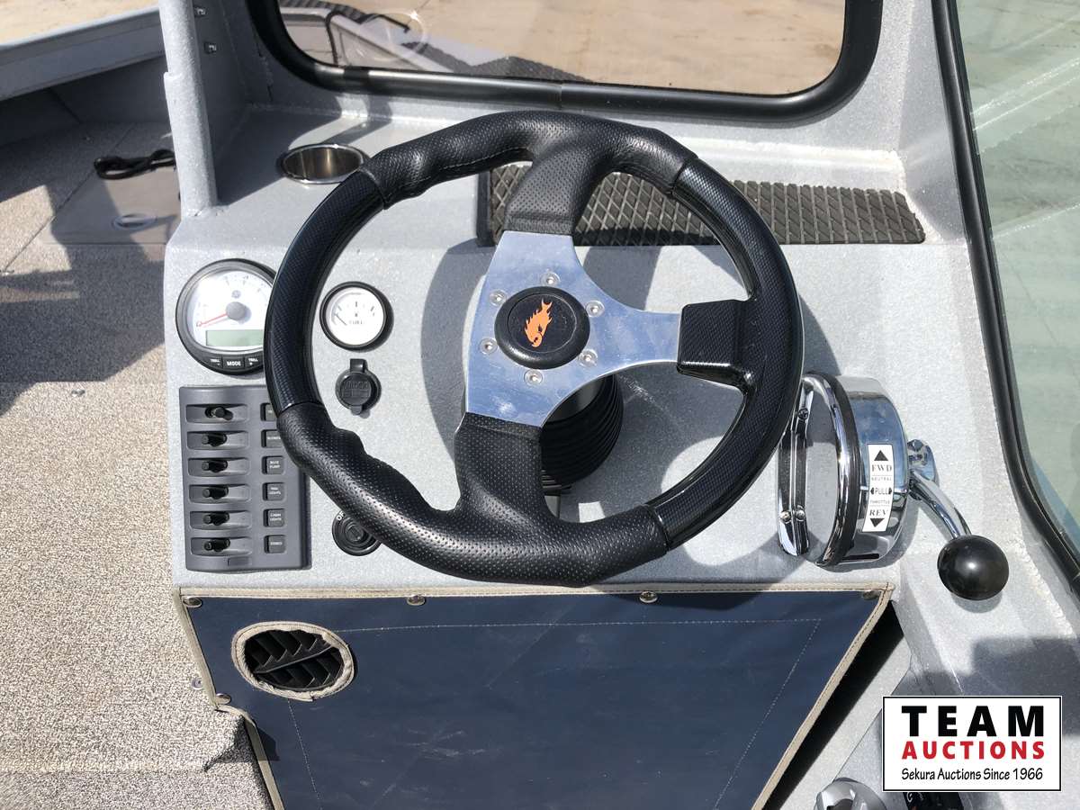 2014 Karavan 2350 Tandem Boat Trailer, diesel heater, upgrade reverse bucket, 10 degree bottom, full UHMU plastic upgrade, (2) strakes, bow cover, high skew impeller, polish sides, polk audio (4) speaker system, (2) floating captain chairs, hydro turff on bow/swimgrid, new dual batteries, full camp cover, half camp cover, travel snap top, padded window cover, snap center door