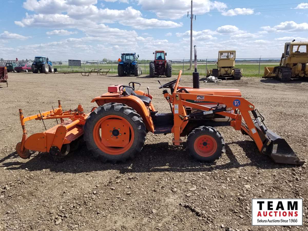 Loader with 48 inch bucket, 52 inch tiller, 540 PTO, (1) hydraulic outlet, 5.00-12 fronts, 8.3-22 rears