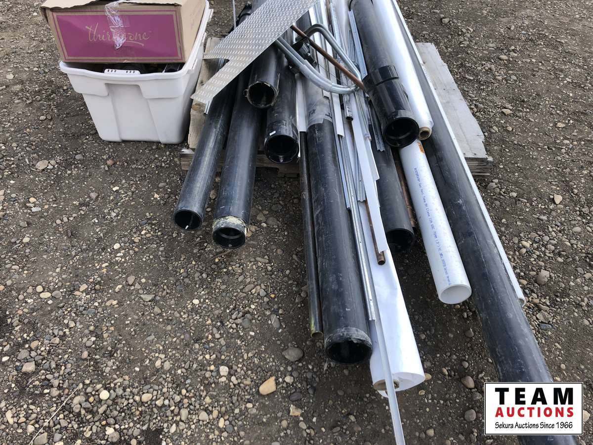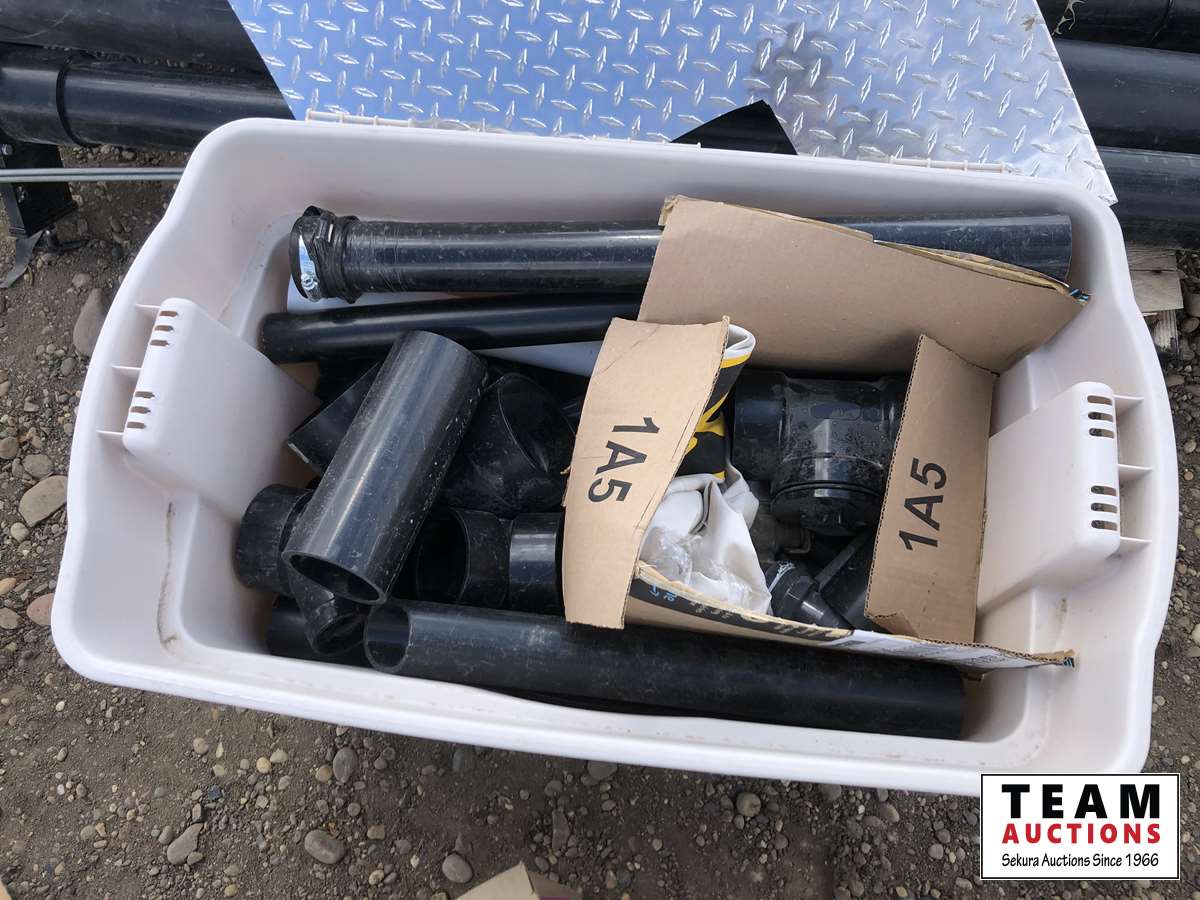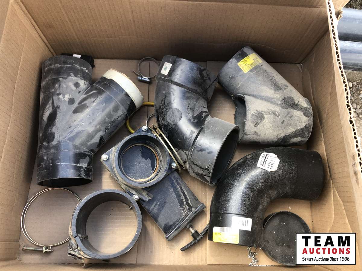 ABS pipe, Plastic rolls, boxes of miscellaneous ABS fittings