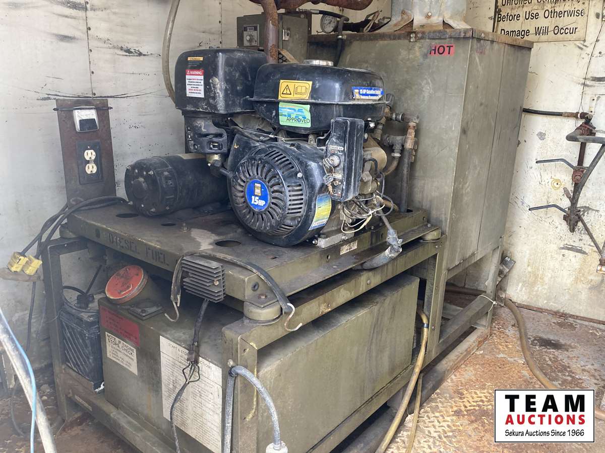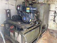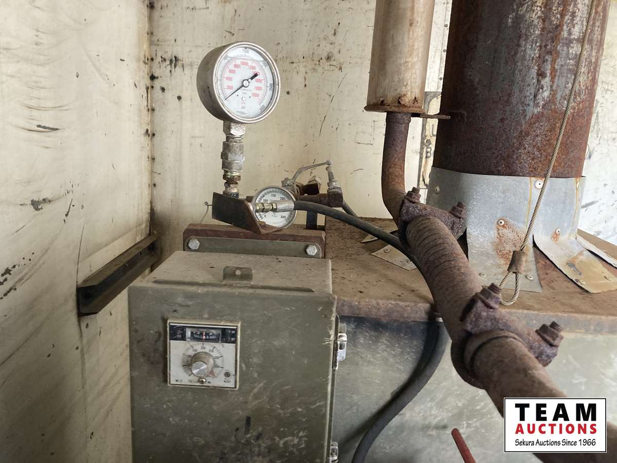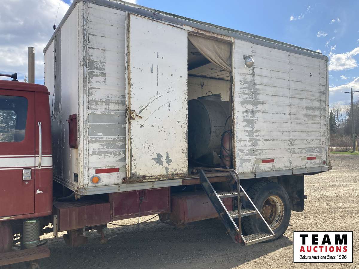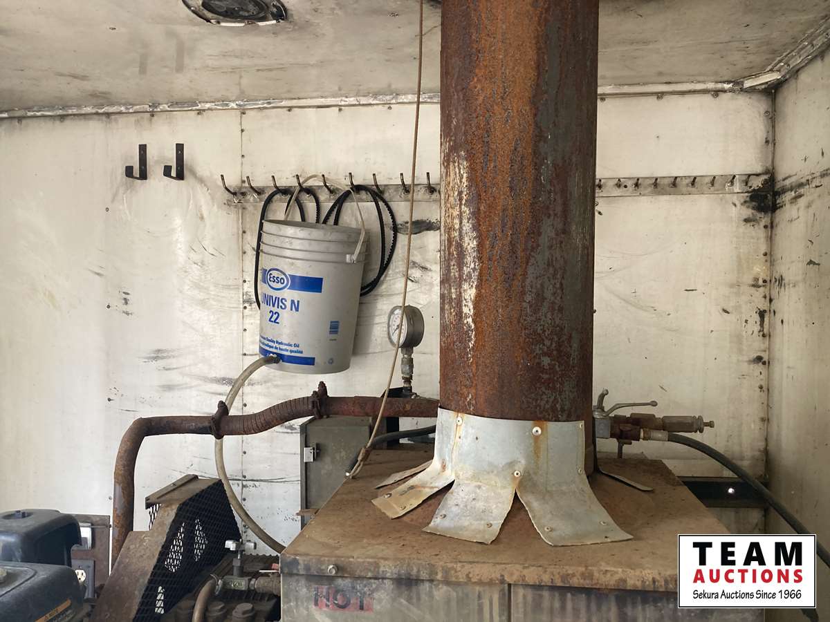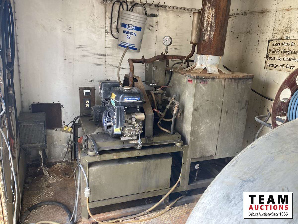 International 6 cylinder 466 diesel, 5 speed high/low split transmission, air brakes, spring suspension, 500 gallon water tank, 15 HP gas motor, cleaning compound tank, Winco 2000 watt generator, bowie pump, extra diesel and gasoline tank outside of van, TS1531 triplex pump, 11R22.5