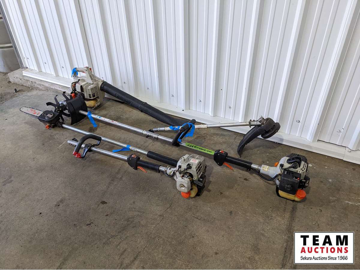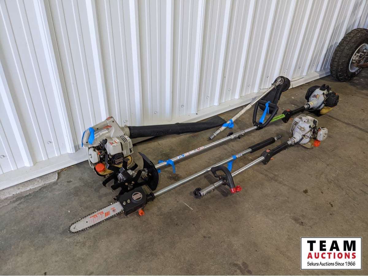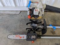 (1) Trimmer grass attachment, (1) chain saw attachment, (1) tiller attachment