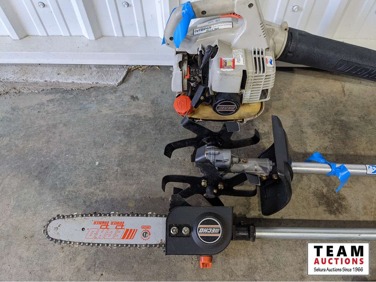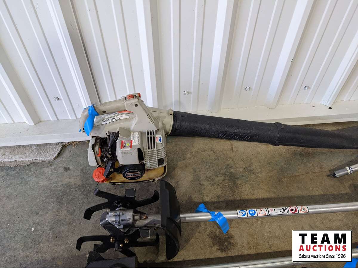 1516 (2) Echo Trimmer Power Heads with Attachments & (1) Echo Gas Hand Held Blower