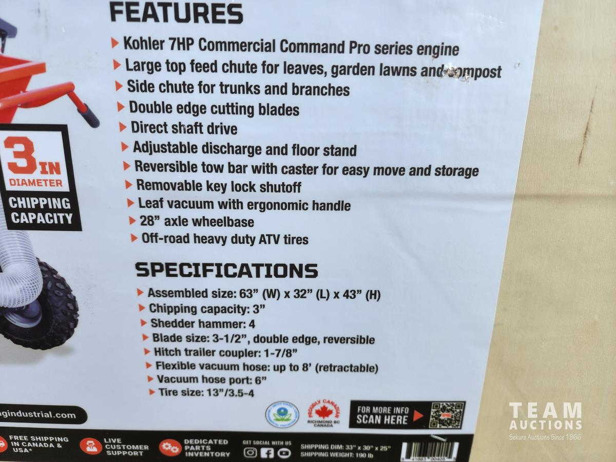2458 TMG Industrial 3 Inch 1 Kohler Powered Chipper Shredder Vacuum (Unused)