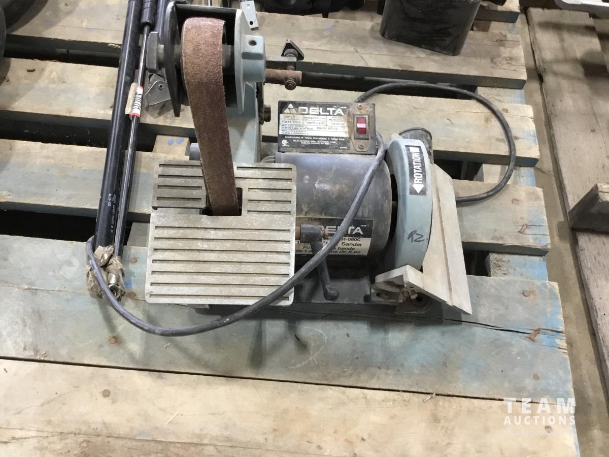 1846 Delta Sander, Assorted Lawn Mower Wheels, Trailer Tie Downs Ratchets