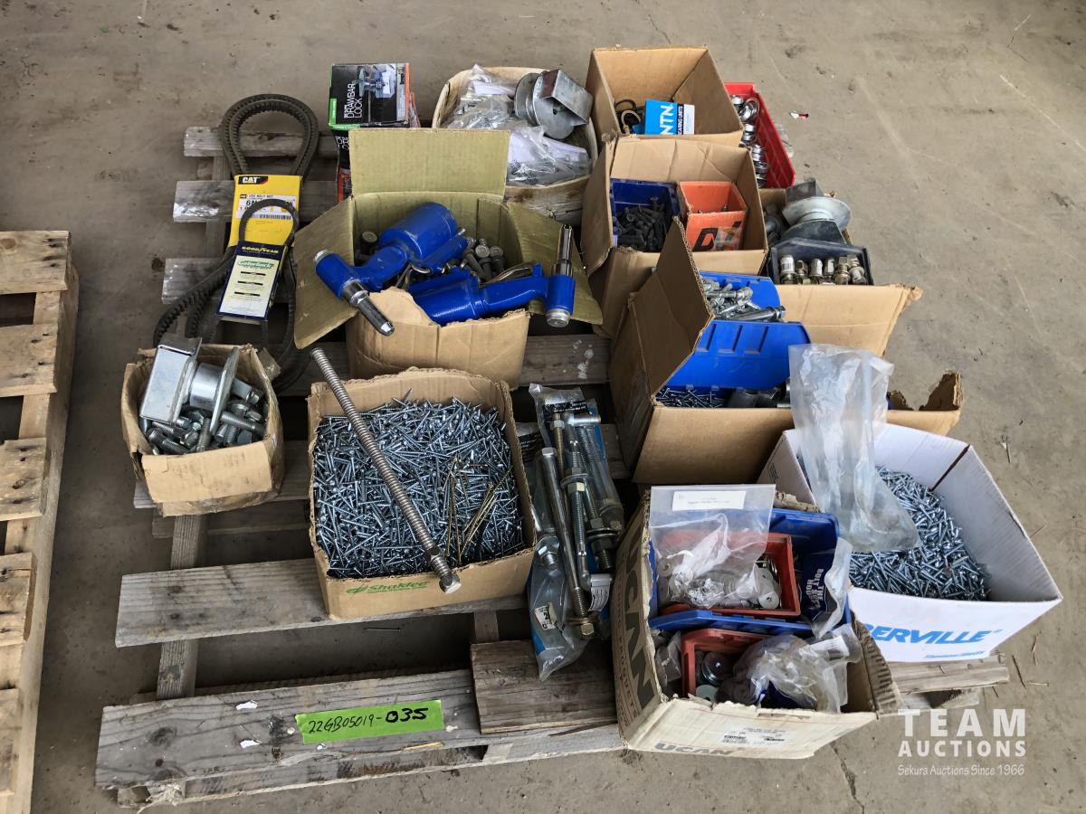 screws, nuts, bolts, draw bar locks, V belts, etc.