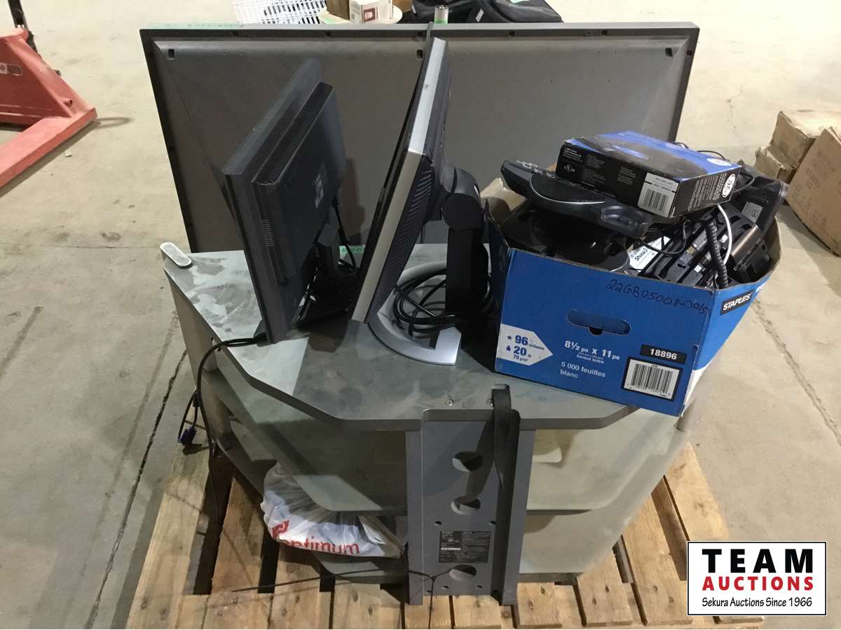 computer monitors, 50" tv, answering machine, telephones, entertainment stand