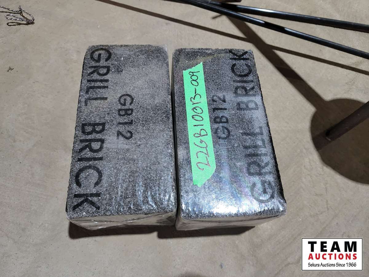 Grill cleaning bricks, smelting pot, dinner triangle, garden hose, brick of lead