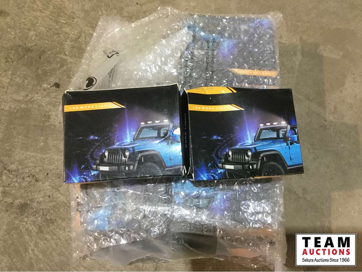 Multimeter, signs, spotlights, mini pliers, soldering gun, Jet socket set, LED work lights, qty of miscellaneous lights, tool organizer