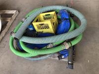 lay flay hose, camlocks and valves, trailer jacks, 2 inch submersible pump, assortment of suction hoses