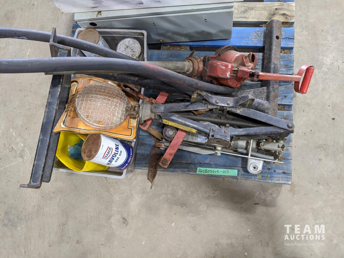 barrel pumps, motor oil, jacks, homebuilt hitch mount bike carrier, small plow