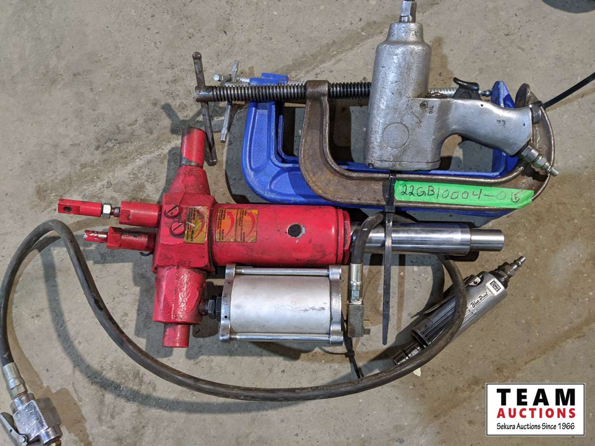 Air 1/2 inch drill and die grinder, c clamps, hydraulic jack