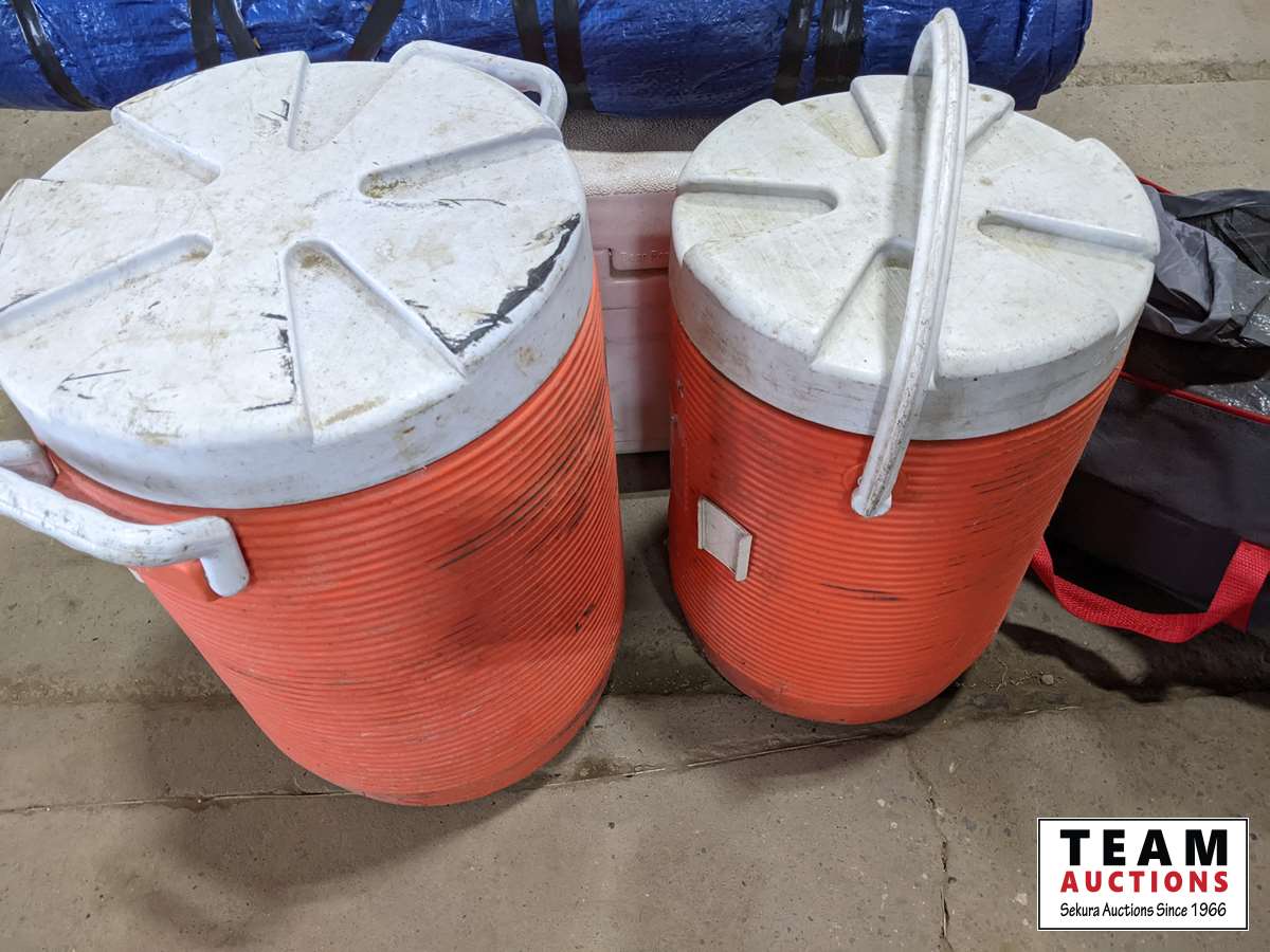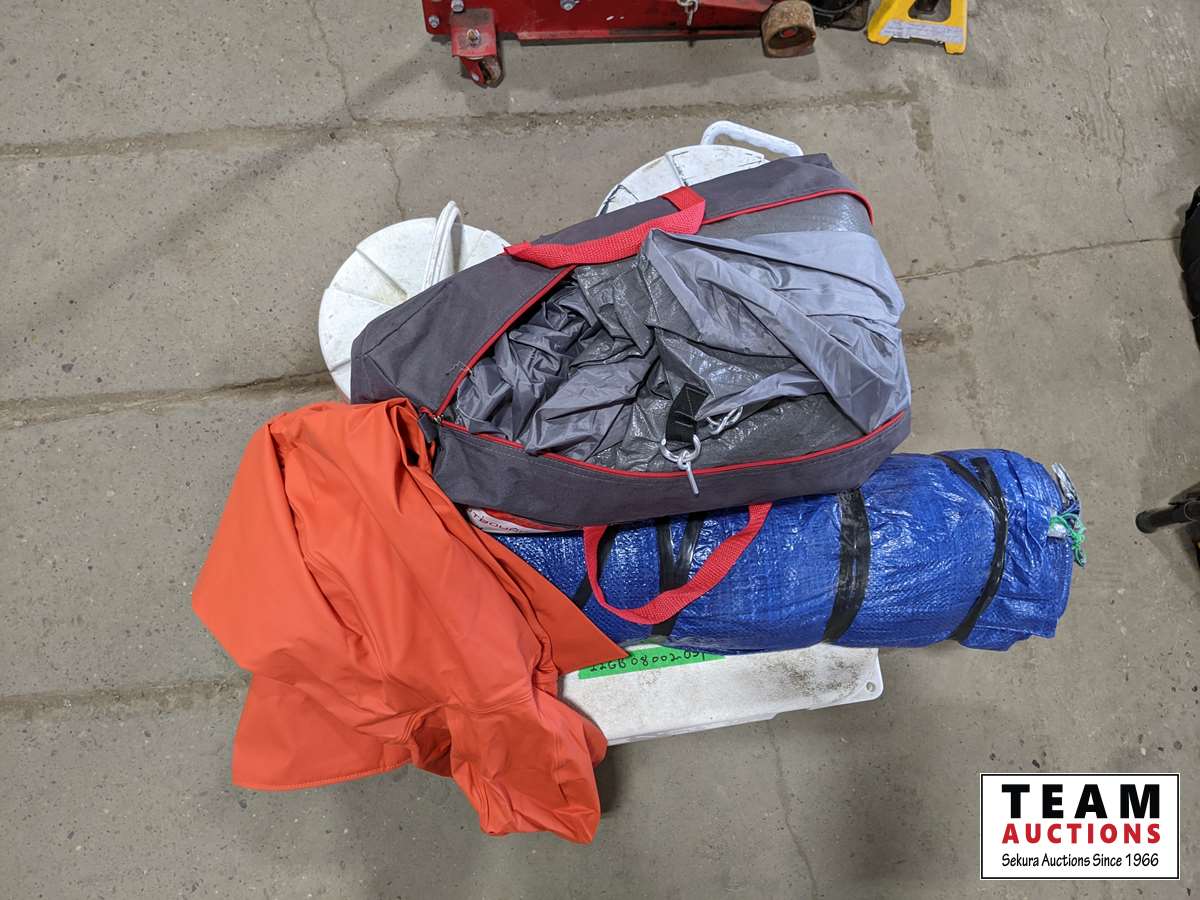Coolers, tent, tarp, Kelly Hanson XL rain coat