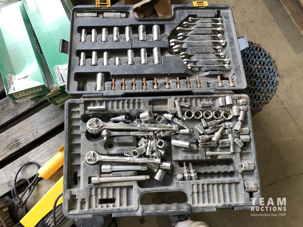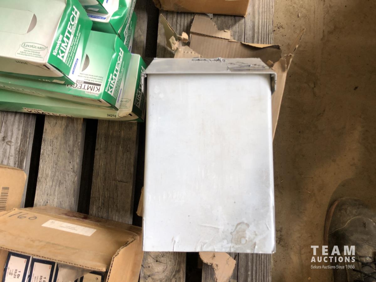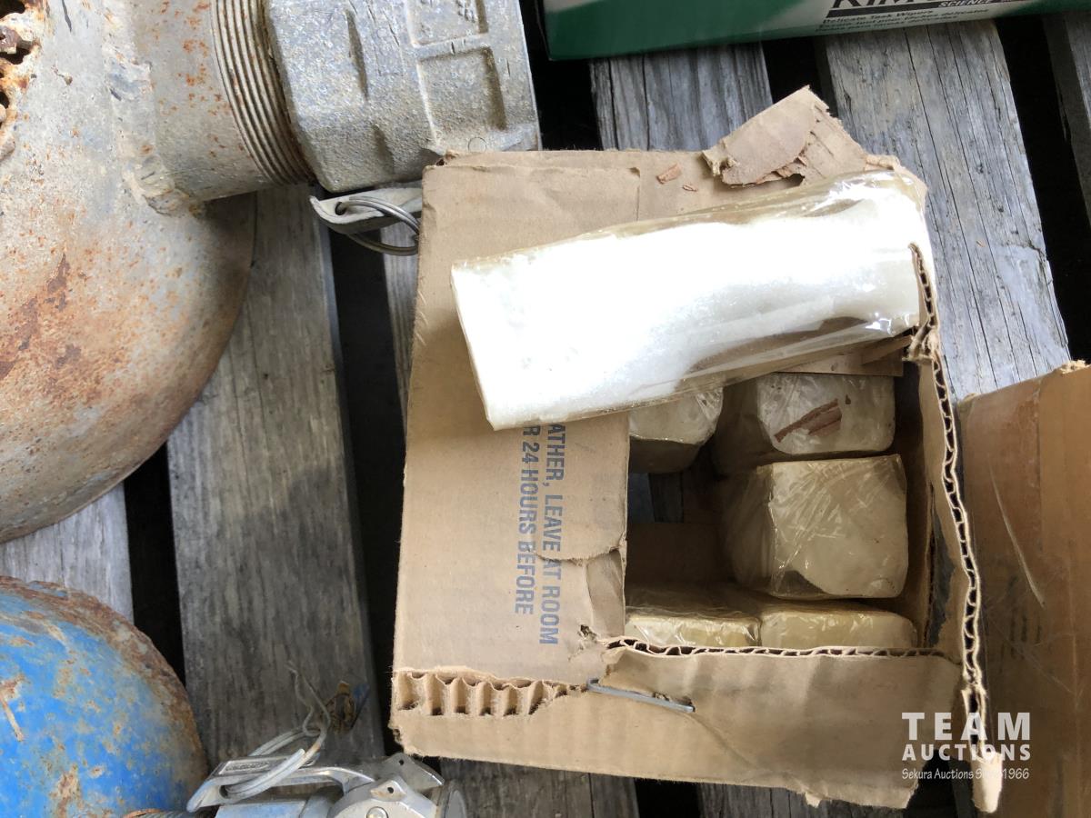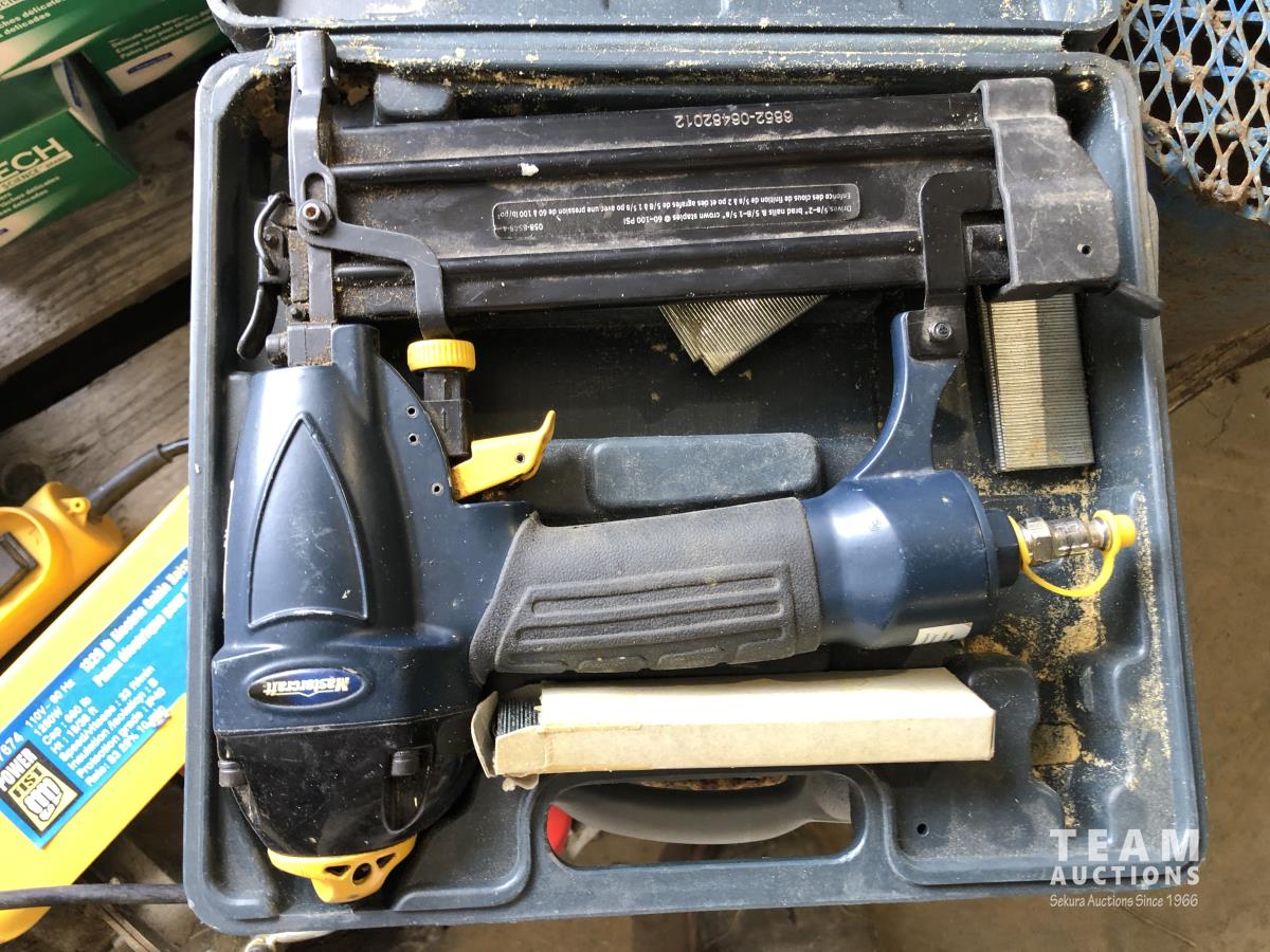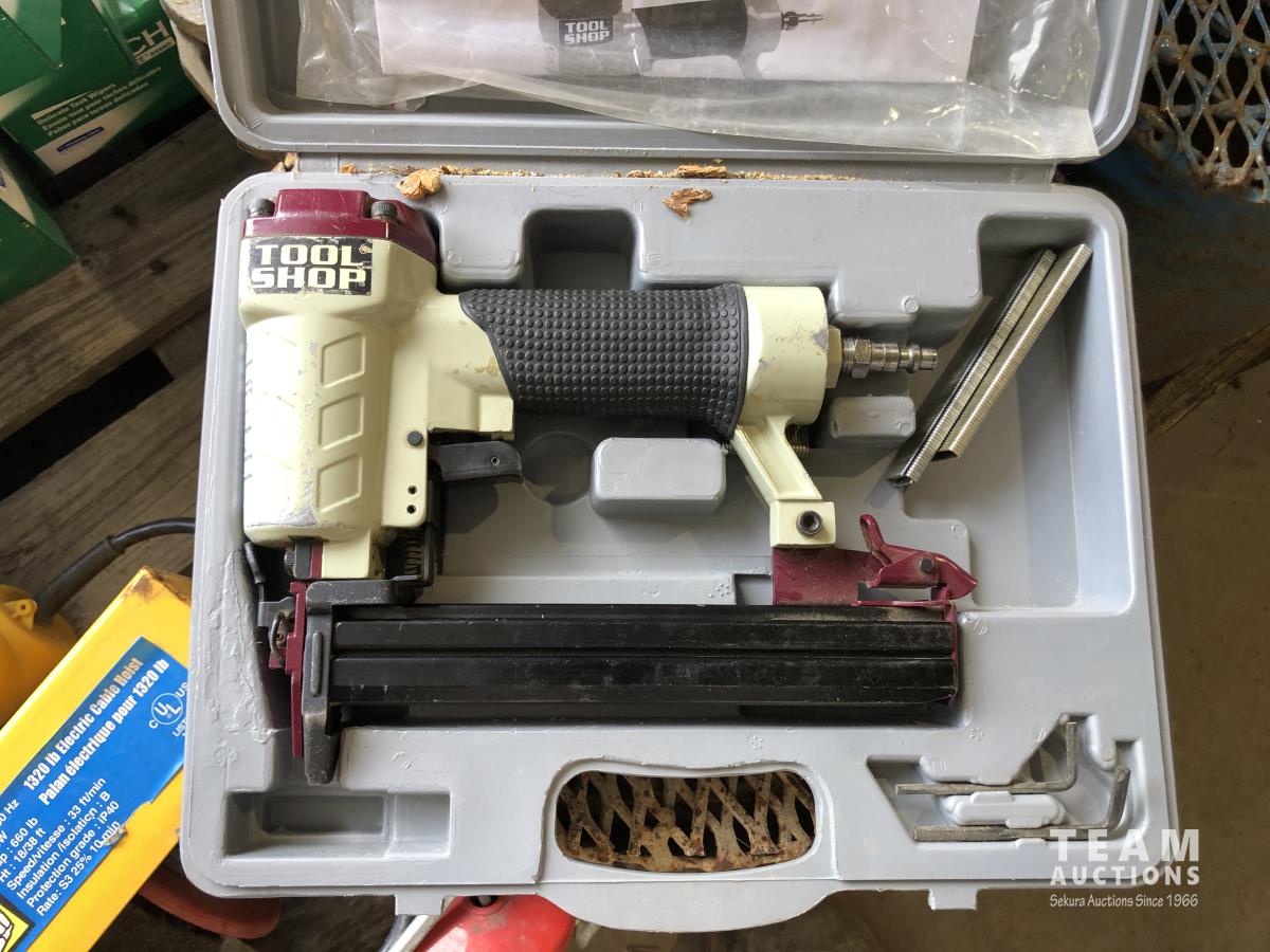 Winch 2000 lb, (2) brad nailers, Mastercraft socket set, electric cable hoist, (2) Pump suction screens, box of wipes, urinal cakes, Qty of new padlocks, paper towel dispenser, qty of vents