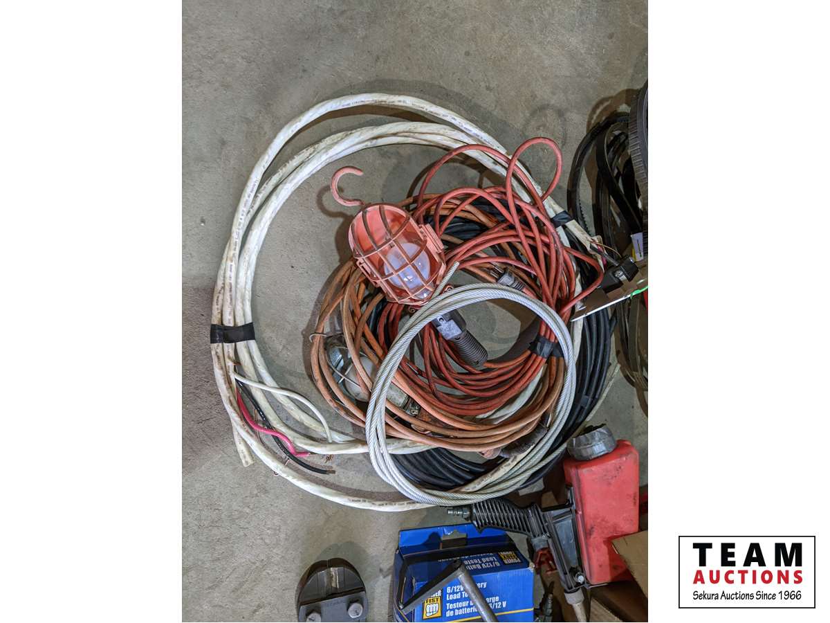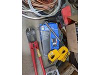 Miscellaneous belts, wrenches, bolt cutters, load tester, drill