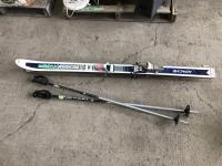 downhill skis w/ bindings, ski poles and pair of vintage water skis (no bindings)