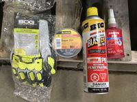 Clamps, valves, thread locker, electrical tape, cut resistant gloves, winter hard hat liners