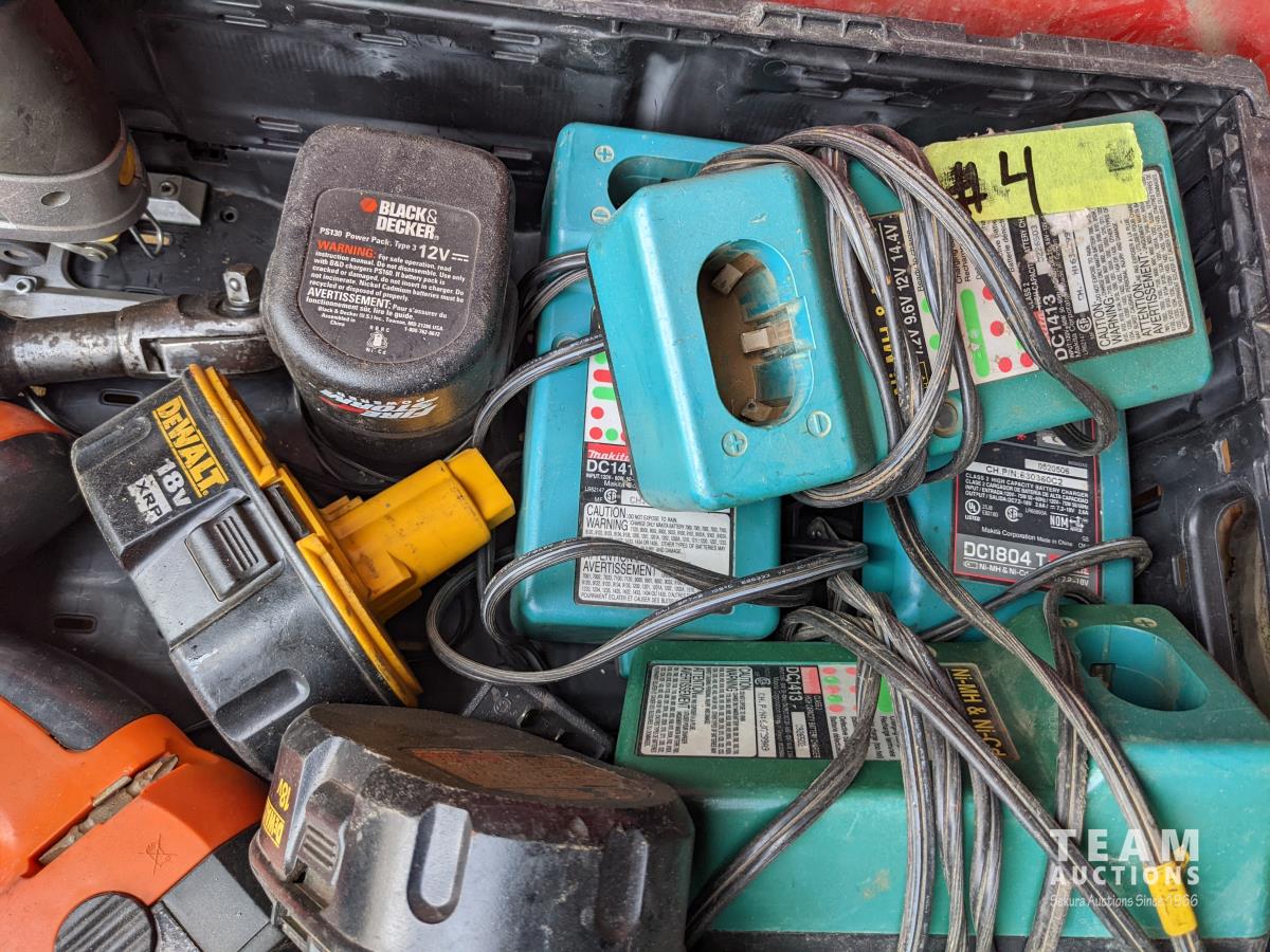 5,000lb snatch block, 12 inch pully, assorted sockets, cordless drill and jigsaw w/ batteries and chargers