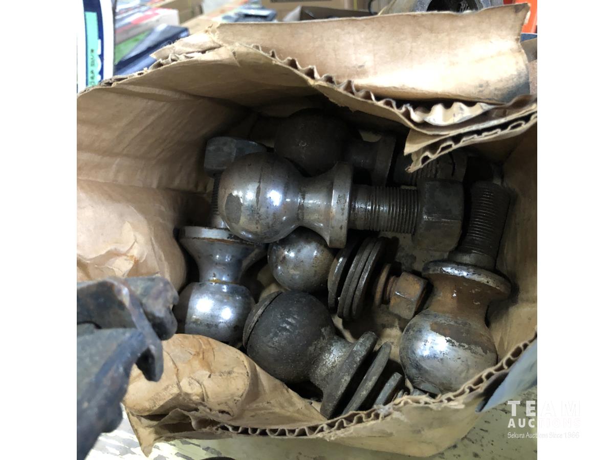pipe fittings, trailer hitches receivers and balls, bolts, mud flap, battery charger, u-bolts, spiral nails