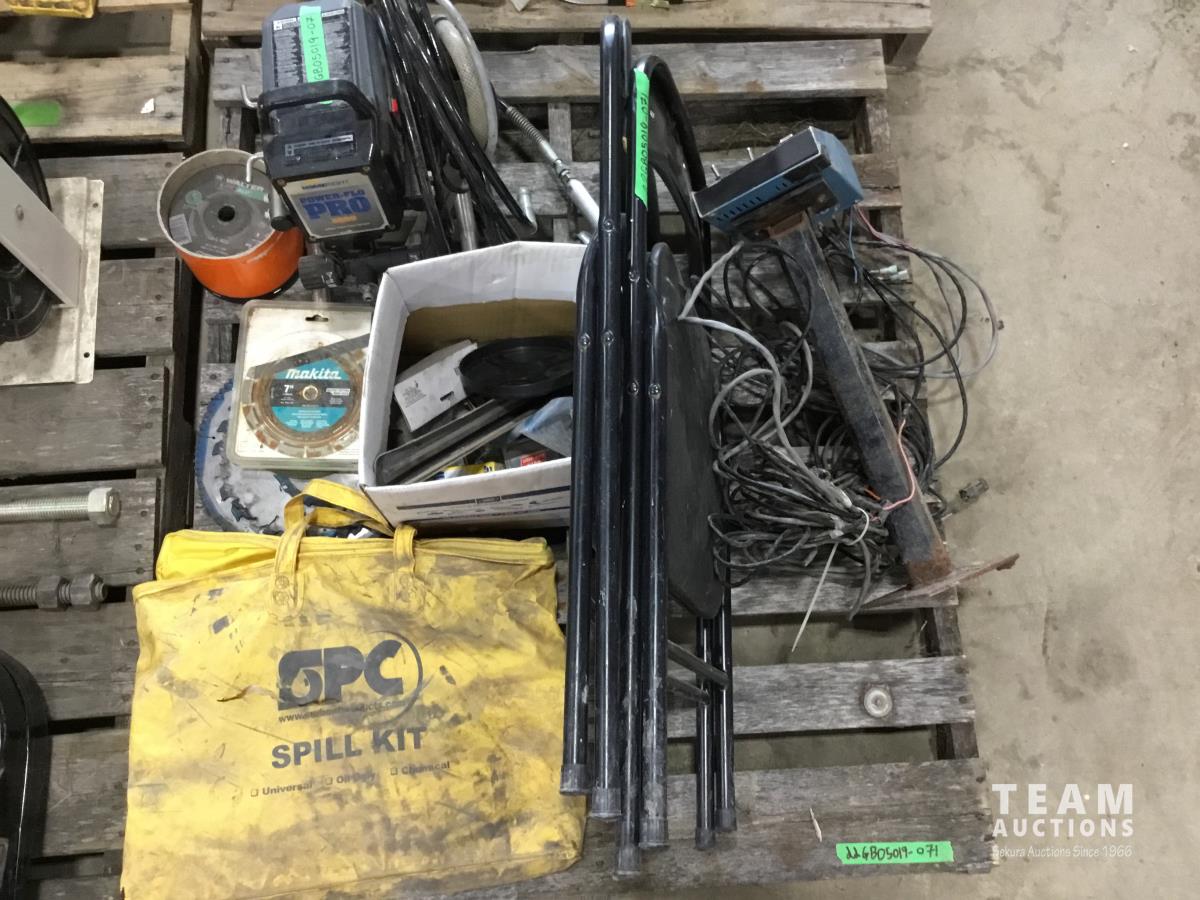 2226 Spill Kit, Piston Paint Sprayer, (2) Folding Chairs, Grinders Discs, 7 Inch Saw Blades