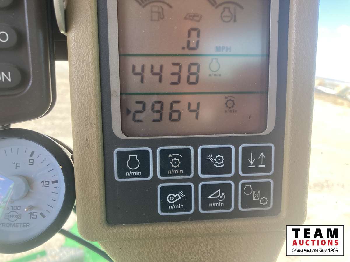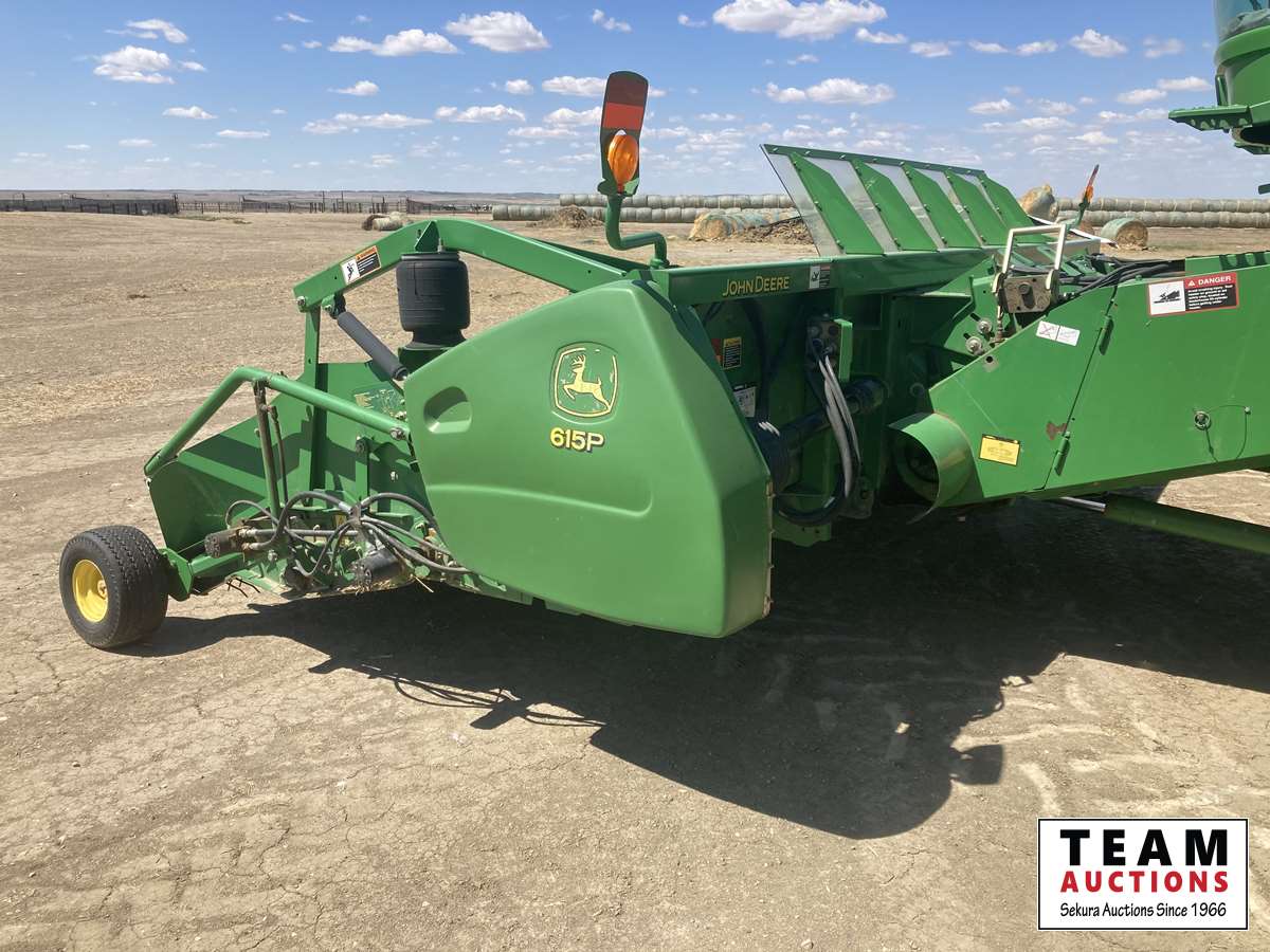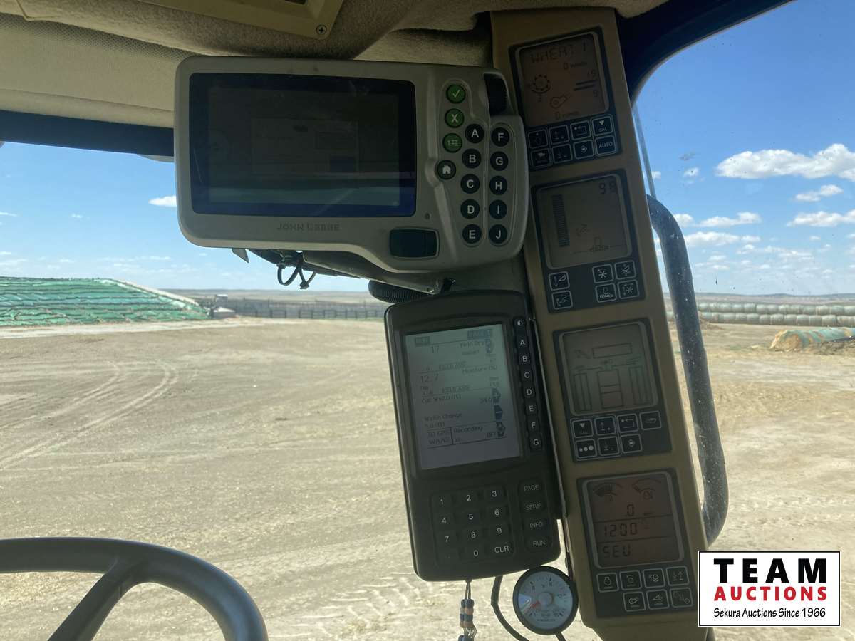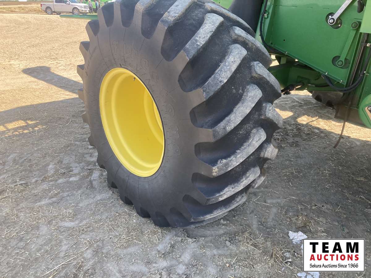 615P 15 ft pickup header, s/n H00615P720502, reverser, variable speed reel, auto header height control, fore & aft, grain tank extensions, fine cut chopper, yield & moisture, 520/85R42 front duals, 28 L -26 rear, StarFire ITC, 2964 seperator hrs showing