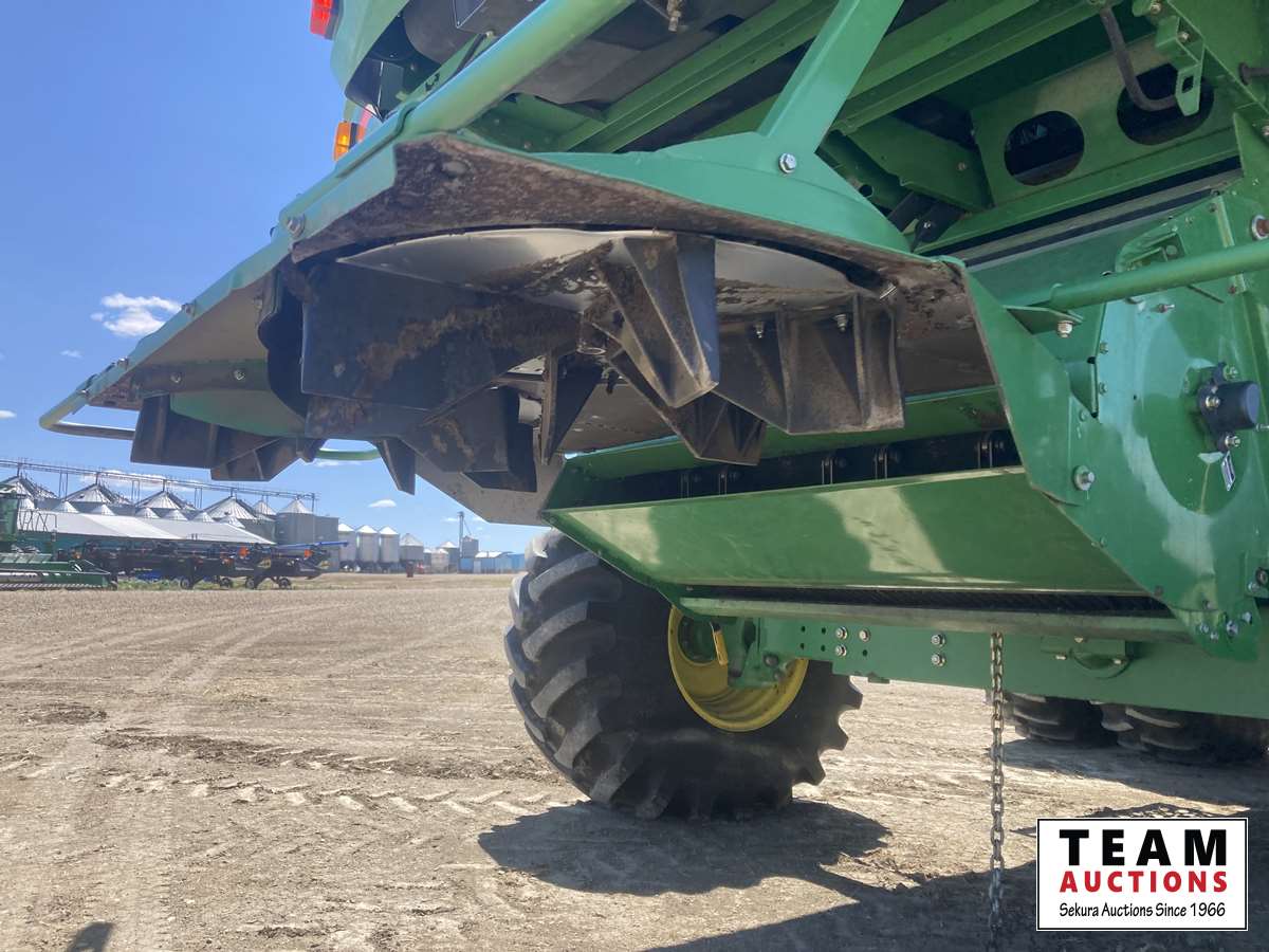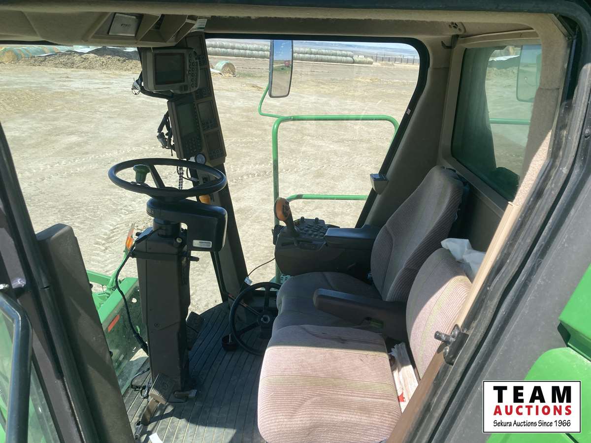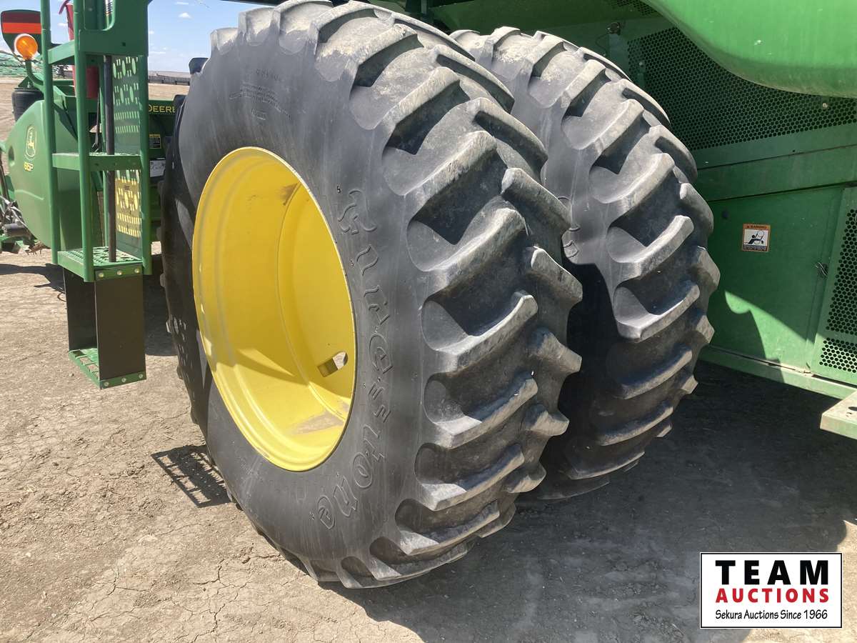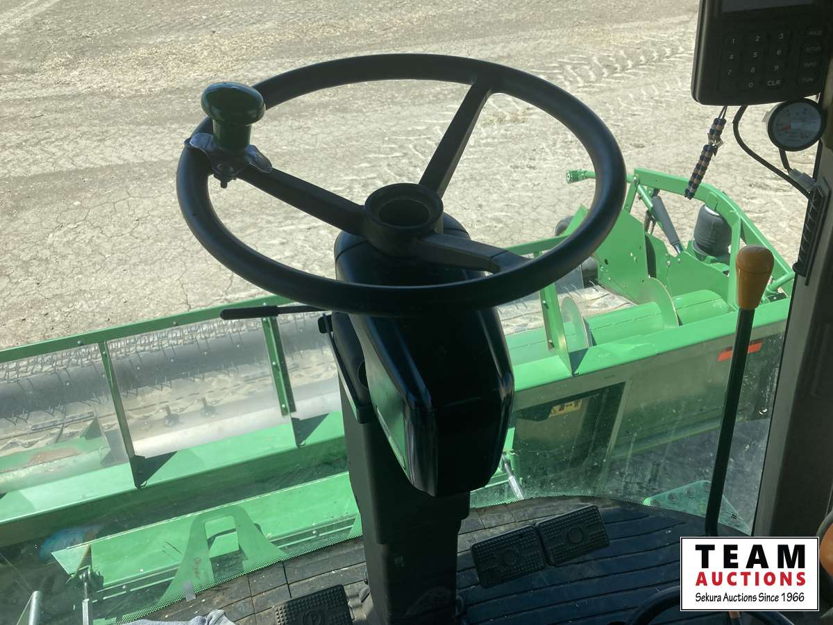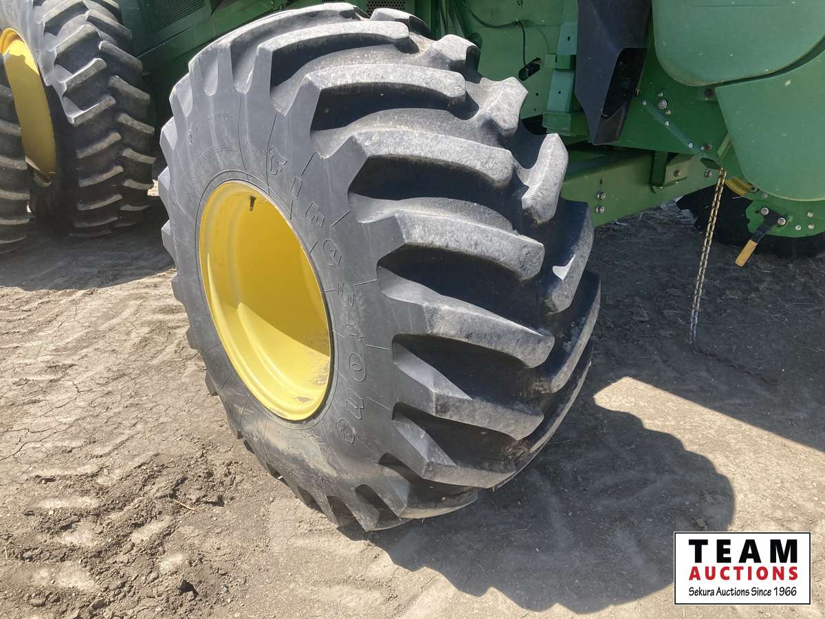 615P 15 ft pickup header, s/n H00615P720502, reverser, variable speed reel, auto header height control, fore & aft, grain tank extensions, fine cut chopper, yield & moisture, 520/85R42 front duals, 28 L -26 rear, StarFire ITC, 2964 seperator hrs showing