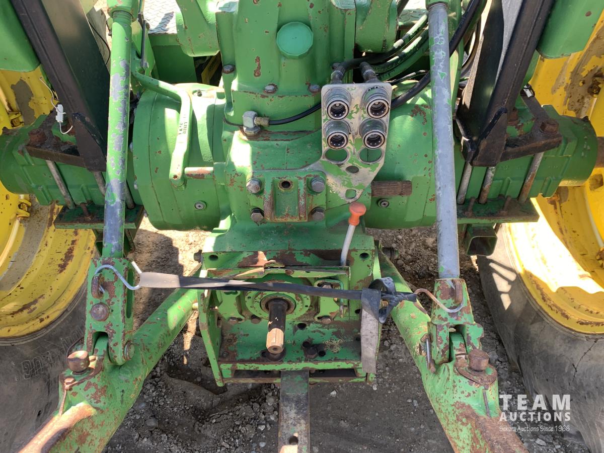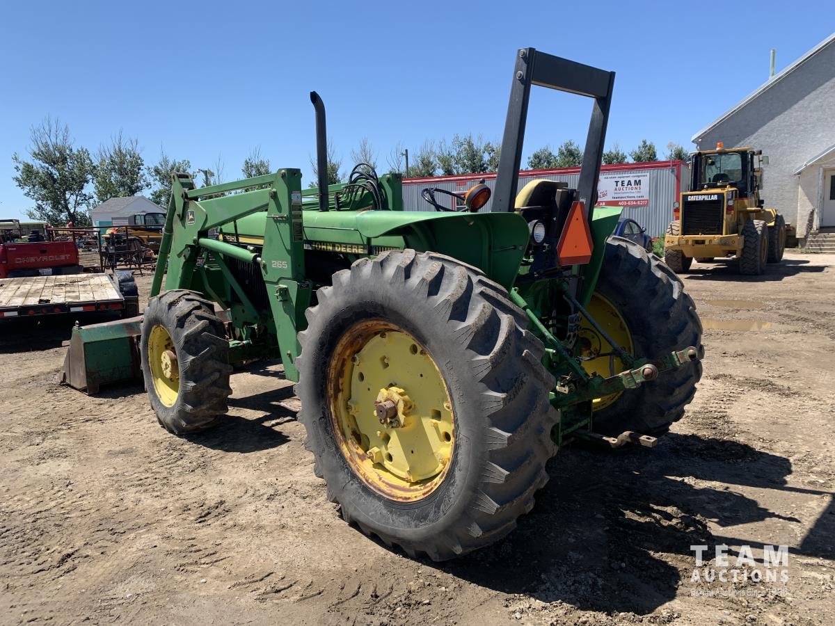 97 HP engine, 85 HP PTO, 8-Speed Partially Synchronized, John Deere 265 loader w/ bucket, 540/1000 PTO, 2 hydraulic outlets, front hydraulics, 18.4-34 rear tires,13.6-24 front tires