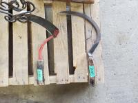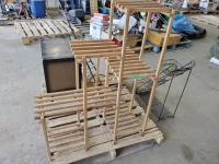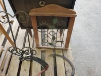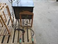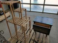 (2) plant stands, (2) drawer end table, plant hangers & (2) hand sickles