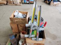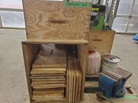 Honey bee boxes, ice auger, ladder jacks, extension cords, vice, indoor electrical wire, weed eater