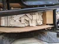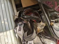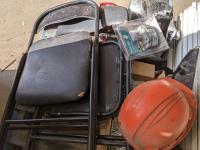 3 ft aluminum railing pickets, folding chairs, Makita battery, soap dispenser, snowmobiling gloves and ski googles