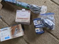 Regal aluminum deck end post, Weiser smart key deadbolt, Moen Faucet, Petsafe collar w/ remote, Seimens 8 breaker load center, 5 inch pot lights, qty of miscellaneous electrical parts