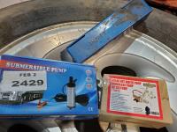 3 ton kito chain hoist, submersible pump & 12v solar hot water, impact driver, wrangler tire 235/75R15 w/ rim & hitch mount jerry can holder