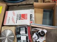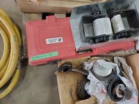 Breaker box (new in box), weed eater (new in box), barrel pump (new in box), winches, lock out tool kit, Mastercraft workstation