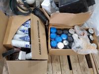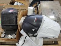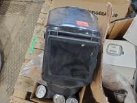 Sakura microtome knife sharpener, battery operated air circulating face shield, face shield, welding helmet (x2), boxes of grease, aluminum folding chair, knife