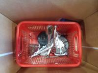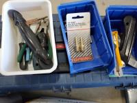 Tiny screw drivers, tool box (empty), wrenches, tape measure