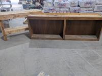 bench 34 inch x 13.5 inch x 33 inch, shelf 57 inch x 22.5 inch x 35 inch
