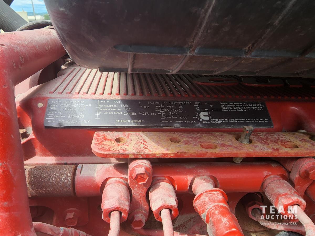 deleted Cummins ISX15 engine, 18 speed Eaton Fuller transmission, 46,000 lb rears, Loadshare front suspension, air ride suspension, 24 inch sleeper, differential locks, P/W, P/L, a/c, DOT 407 22M3 stainless steel tank, 5 inch T&E pump, Finch 5332E level monitors, front and back sumps, heated load box, off side load/unload line, top walkway, pintle hitch, 11R24.5 inch tires on aluminum rims