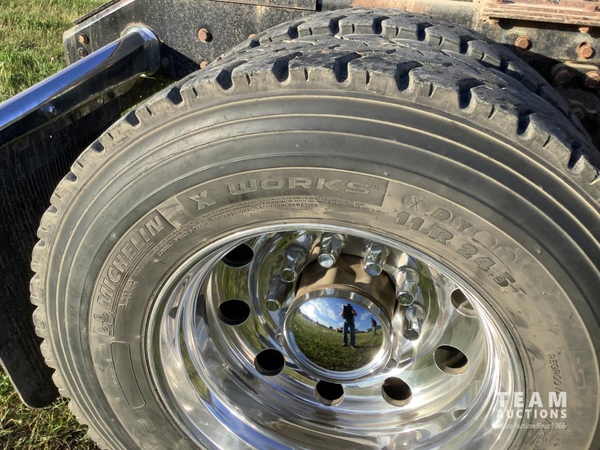 MX-13 Paccar 500 HP. Engine, 18- speed transmission, 12,200 PD front axle, 46,000 rears with 4 way lockers, air ride suspension, air sliding 5- TH wheel, 4-10 gear ratio, rear window in sleeper, hydraulic wet kit, new 385/65R22.5 steer tires, 24 inch rear tires on aluminum rims