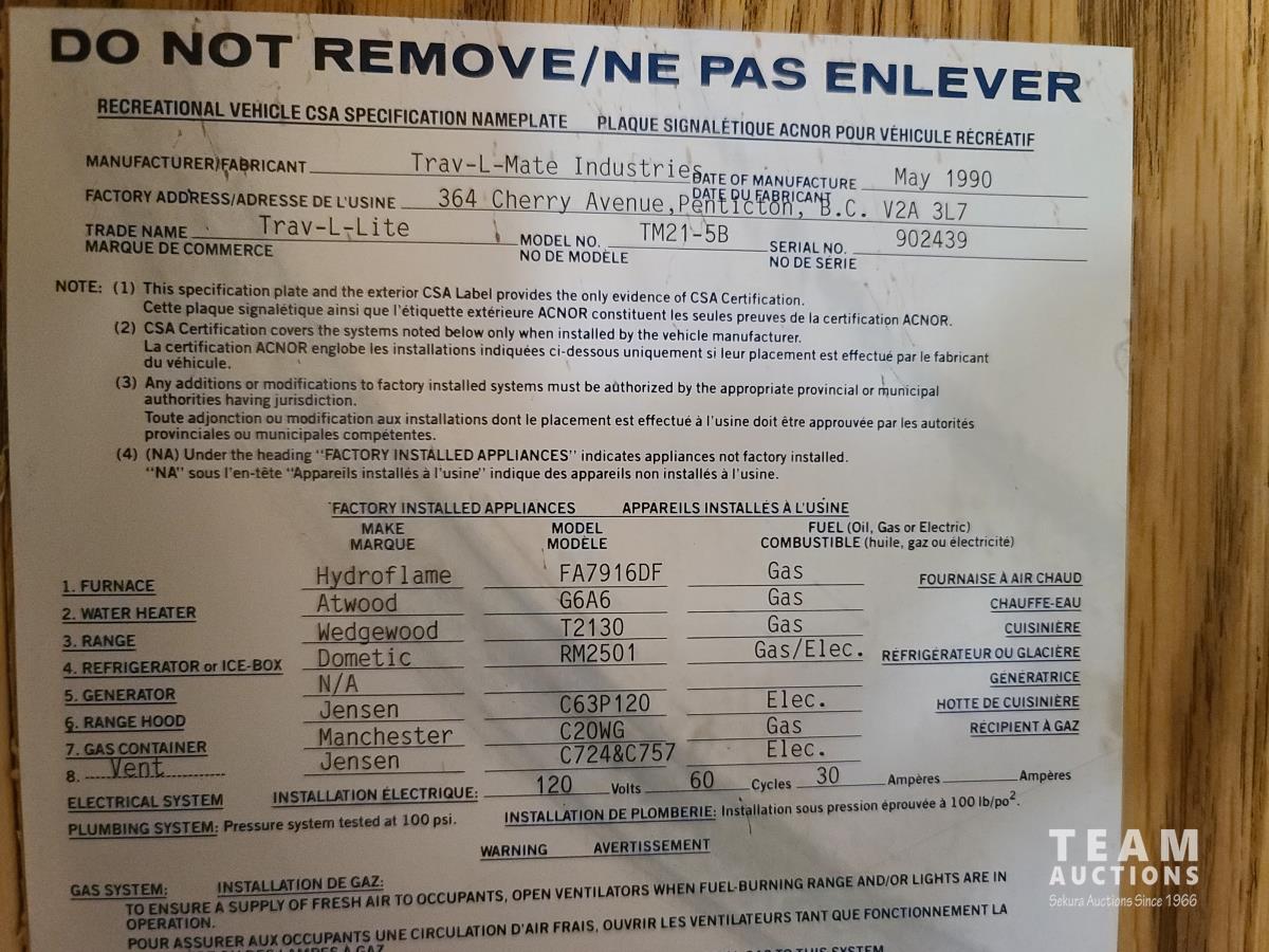406A 1990 Trav-L-Mate TM21-5B 21 Ft T/A Fifth Wheel Travel Trailer
