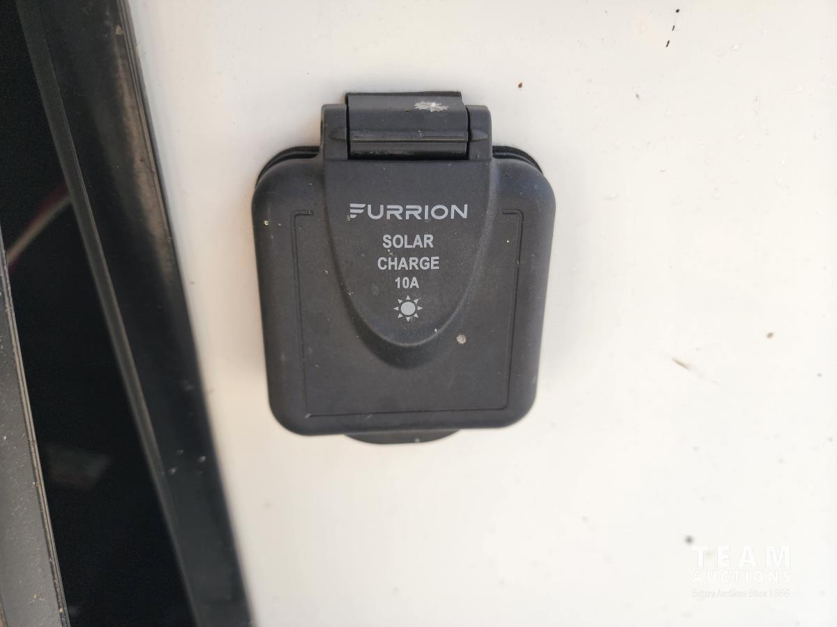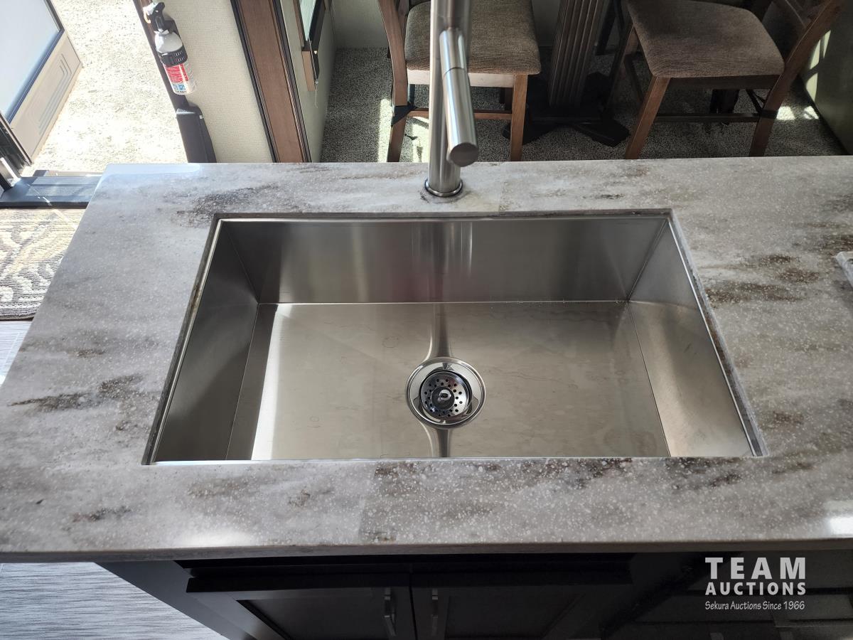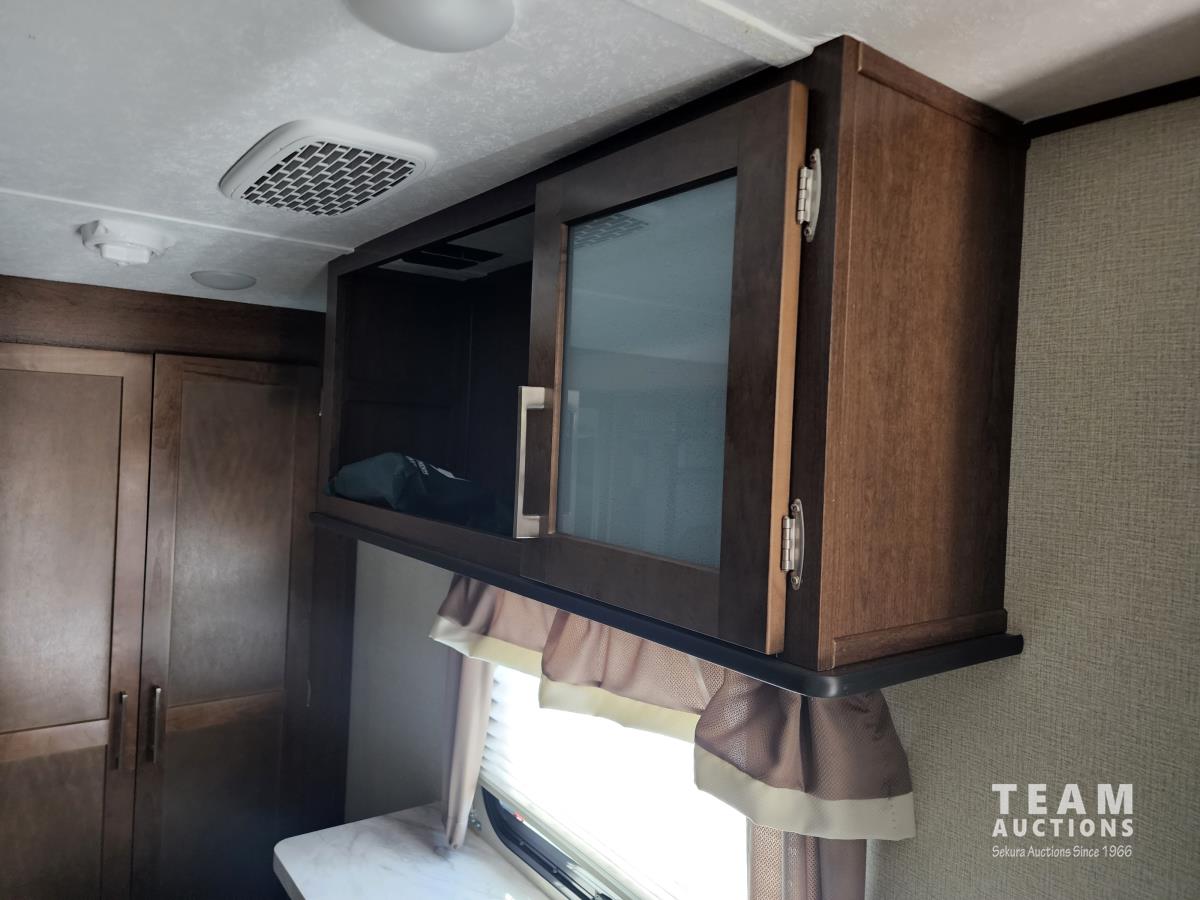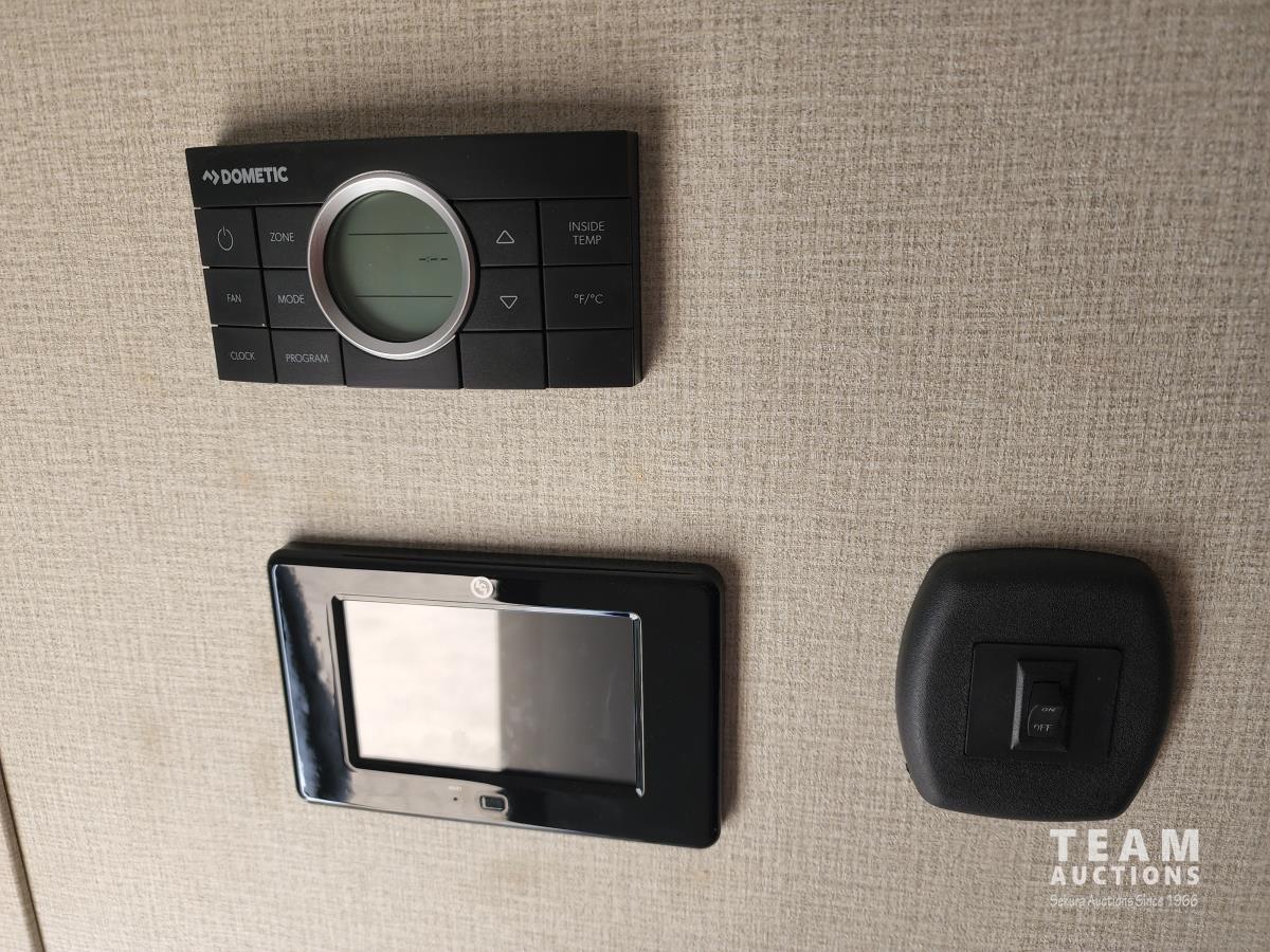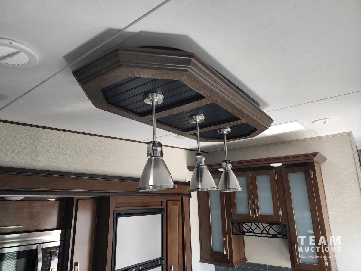 (3) slides, power jacks, power awning, a/c, fridge, stove, microwave, stone countertops, pantry, kitchen table, loveseat and double recliner chairs, TV, fireplace, front bedroom, bathroom, 235/80R16 tires
