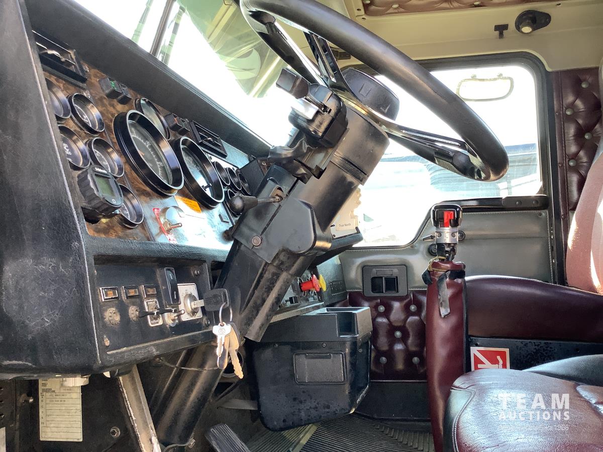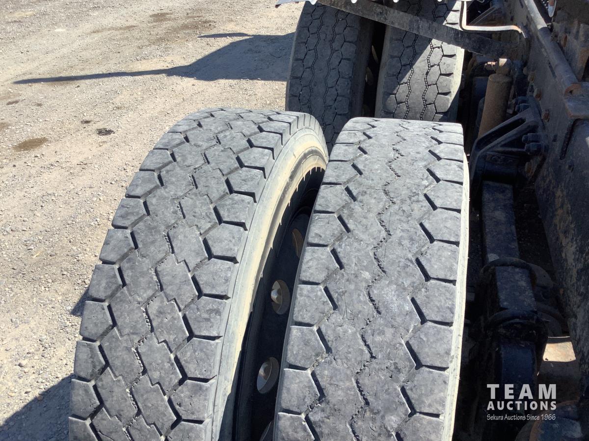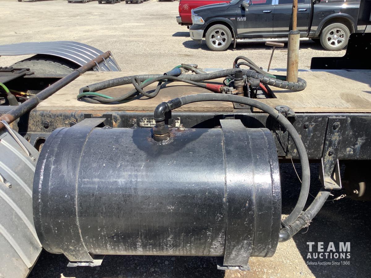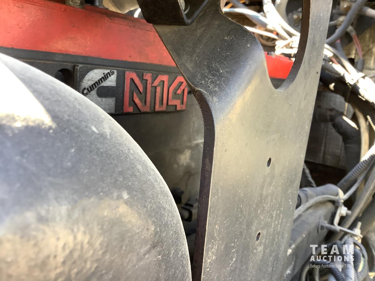 Cummins N14 engine, 13- speed transmission, 40,000 rears with a locker, air ride suspension, rear tow hitch, wet kit, 11R24.5 inch tires on aluminum rims