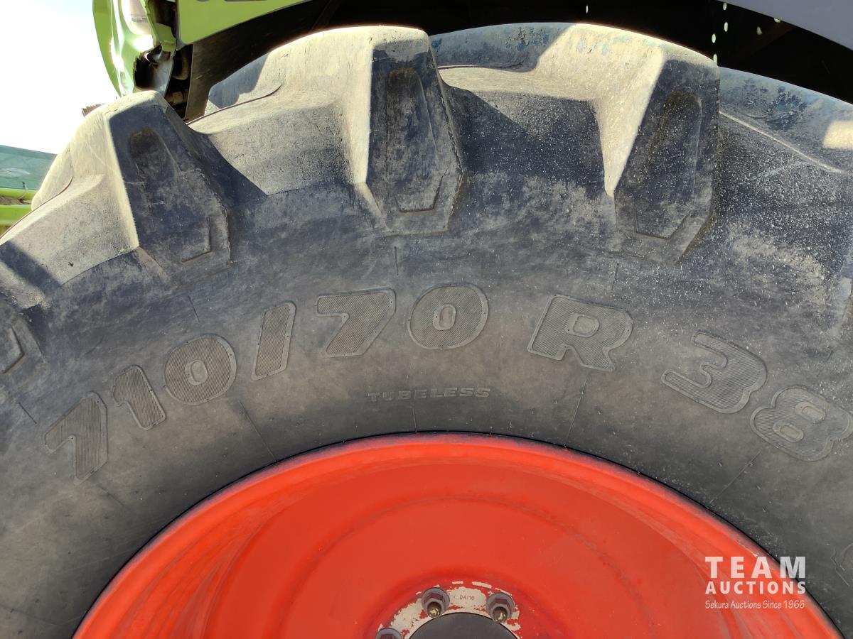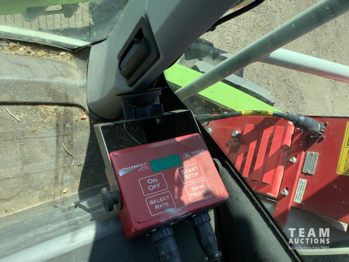 380 pickup header, Mercedes Benz 6 Cylinder engine, rear tow hitch, auto greaser, rear camera, Appli-Pro DuPont pioneer applicator, 710/70R38 drive tires