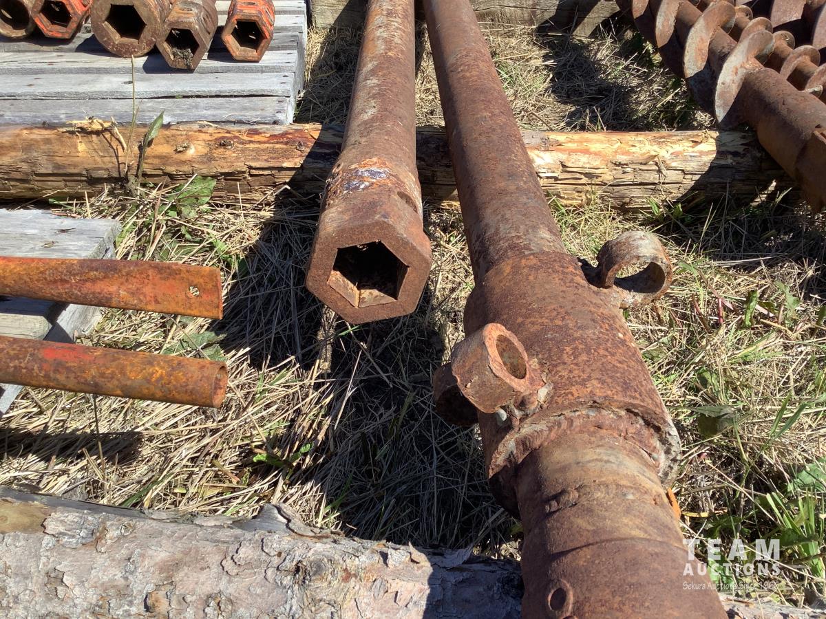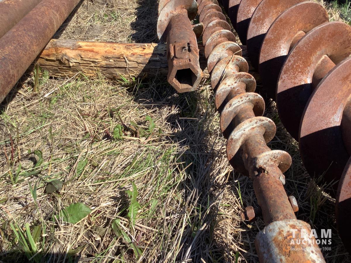 8-FT X 12 inch auger with 2-inch Hex head. 3-inch auger with round head. 6-inch auger with 2-inch Hex head. 7- FT. Extension with 2-1/2 inch Hex head. and 5 FT. Extension with 2-1/2 inch Hex head